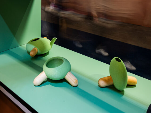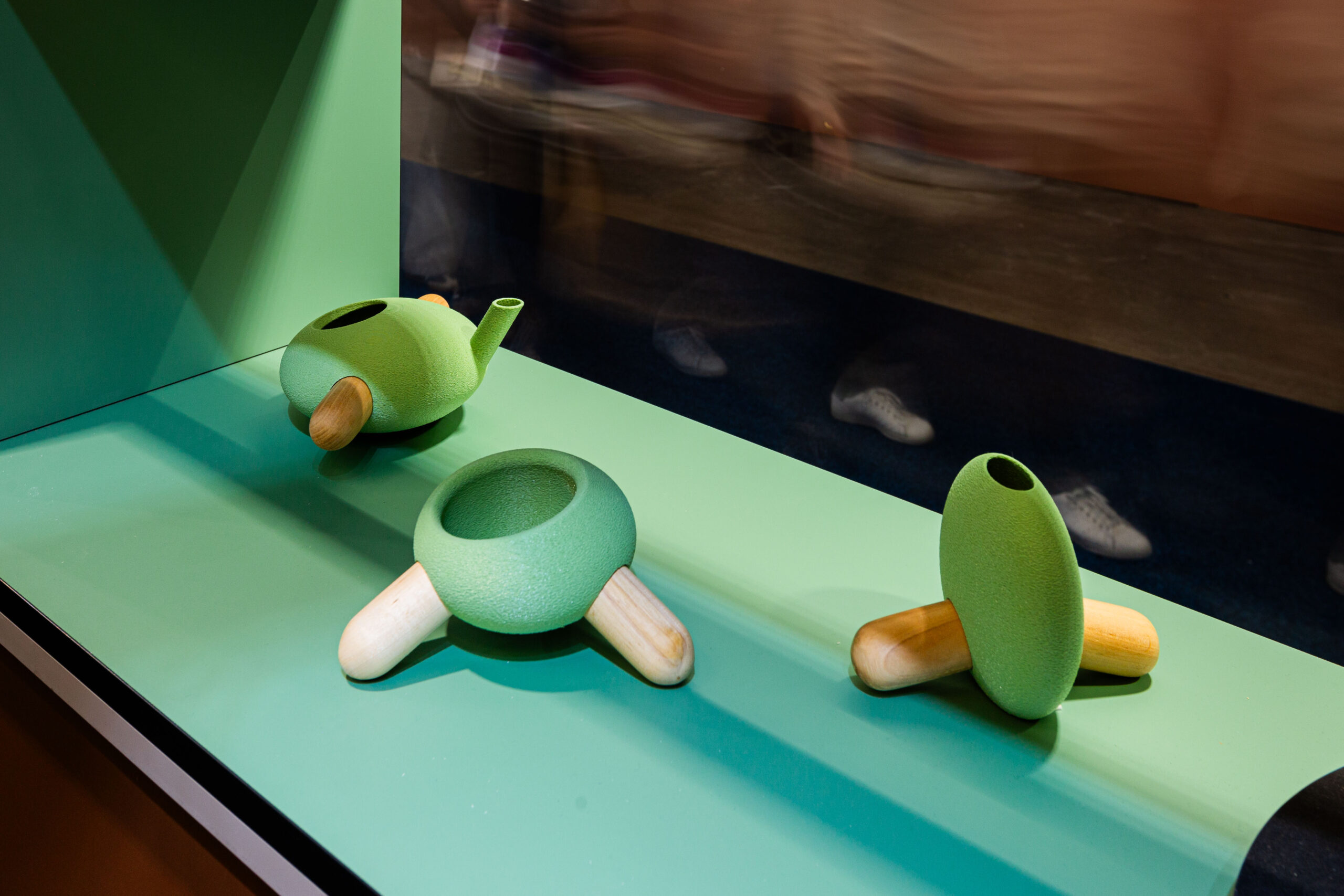 Wystawa „Mood Parade” to trzecia już odsłona współpracy marki FORNER z twórczyniami i twórcami z Uniwersytetu Artystycznego im. Magdaleny Abakanowicz w Poznaniu. Po kuszącym feerią barw „Ogrodzie rozkoszy ziemskich” przyszła pora na korowód nastrojów, zamkniętych w dwunastu sytuacjach, z których każda stanowi odrębną kompozycję przestrzenną, opatrzoną anegdotycznym tytułem, inspirującym do osobistej interpretacji tego, co widzimy. Jasne i czytelne skojarzenia funkcjonalne wynikają z charakteru brył, kształtujących poszczególne odcinki lub raczej należałoby rzec: komórki stworzonego na użytek wystawy labiryntu. Bryły mebli skrzyniowych, zaprojektowanych specjalnie na tę okazję przez Mateusza Wróblewskiego, to dopiero początek historii, która, jak przystało na paradę, posiada swoistą chronologię. Jest wprawdzie owa chronologia dość umowna, zależy bowiem od obranego szlaku zwiedzania. Nie to bowiem, aby kształtować wzajemne napięcia czy przyczynowo skutkowość pomiędzy poszczególnymi obszarami, ale by zgrupować i skojarzyć z sobą wybrane elementy, było intencją twórców ekspozycji. Zgrupowanie w dwanaście pozornie autonomicznych sytuacji, porządkuje percepcyjnie gęstwinę form indywidualnych, które wyodrębniają się i uczytelniają dzięki uproszczeniu wzajemnych relacji. A są to oprawy świetlne, formy rzeźbiarskie, design one off i ceramika użytkowa autorstwa zarówno kadry naukowo-dydaktycznej UAP, jak osób studiujących na naszej uczelni. Nieprzypadkowym motywem, otwierającym tę wyjątkową suitę zjawisk przestrzennych, jest panneau złożone z instrumentów muzycznych. Synestezyjne odbieranie rzeczywistości dodatkowo mobilizuje umysł do aktywnego intepretowania odbieranych zjawisk.