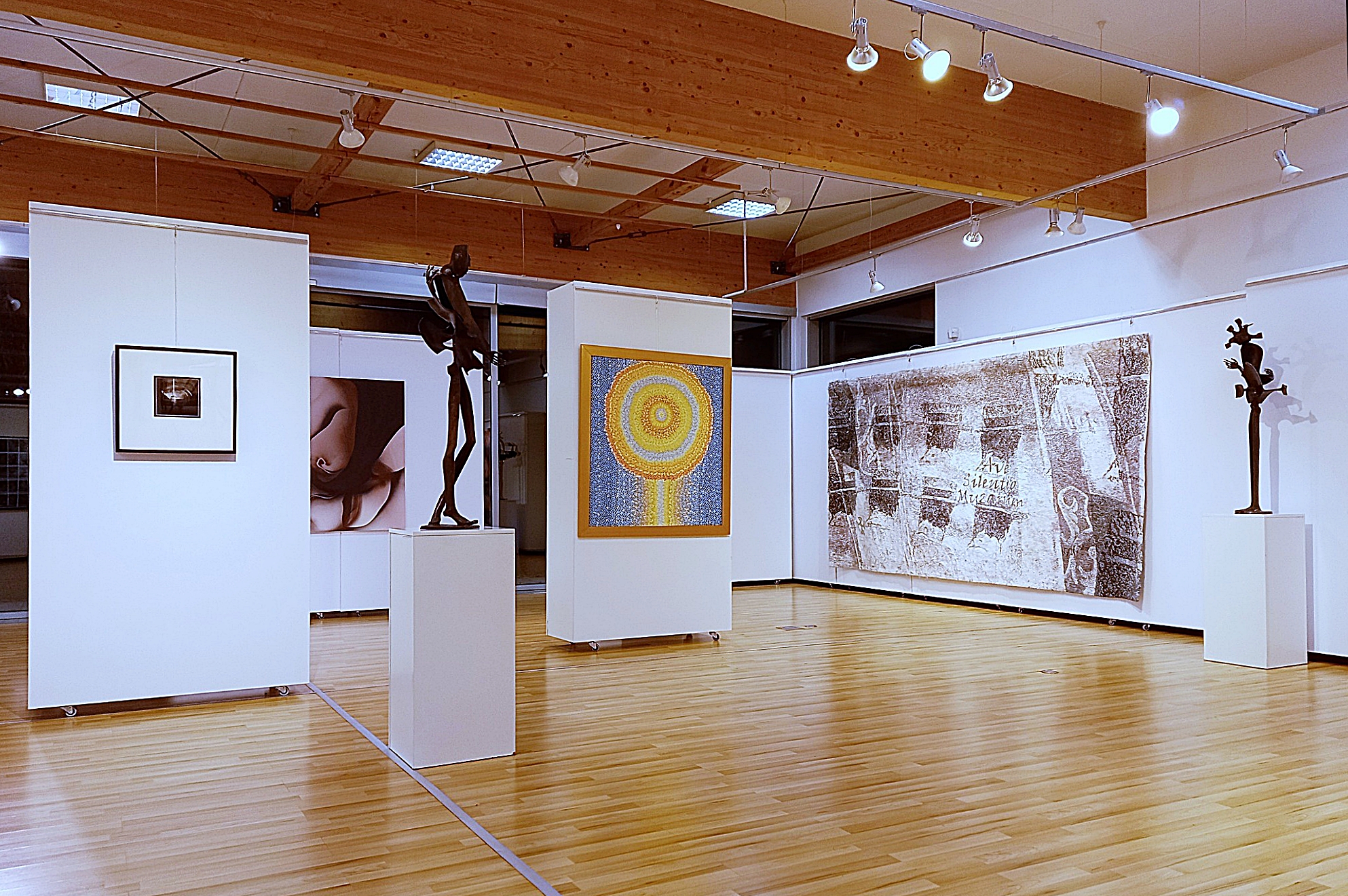 Wystawa „KONTEKSTY” to zaproszenie do wielogłosowego dialogu pomiędzy różnorodnymi postawami twórczymi, autorów i autorek reprezentującymi odmienne pokolenia, stylistyki oraz dyscypliny współczesnych sztuk wizualnych. Projekt ten nie opiera się na sztywno zdefiniowanej tezie kuratorskiej ani rygorystycznie sprecyzowanym ideologicznym założeniu. Jego głównym celem jest stworzenie przestrzeni dla swobodnego i wieloznacznego przepływu znaczeń i emocji, które pojawiają się w relacjach między prezentowanymi dziełami. Zderzenie różnych języków artystycznych otwiera przed widzami nowe konteksty – zarówno formalne, jak i treściowe – jednocześnie pozwalając dostrzec indywidualne ścieżki twórcze i intencje zaproszonych artystek i artystów. Wśród uczestników wystawy znajdują się wybitni przedstawiciele polskiej sceny artystycznej. Prof. Andrzej Banachowicz prezentuje zarówno monumentalne tkaniny unikatowe, jak i obrazy cyfrowe powstałe na bazie własnych, wcześniejszych prac tkaninowych. W dialog z jego twórczością w interesujący sposób wchodzą kolaże Magdaleny Kleszyńskiej wykorzystujące haft na nietypowym, metalowym podłożu. Fotografia, animacja, grafika cyfrowa oraz formy przestrzenne stają się polem eksploracji dla Rafała Boettnera-Łubowskiego, Aleksandra Radziszewskiego i Anety Koźlarek-Ciesielskiej. Nietypowe i zaskakujące potraktowanie artefaktu abstrakcyjnego możemy natomiast odnaleźć w malarswie Sebastiana Krzywaka oraz w eksperymentalnych dziełach Magdaleny Parnasow-Kujawy, w których wykorzystywane zostały tak nietypowe elementy, jak produkowane współcześnie soczewki. Wymiar eksperymentalny reprezentują też z całą pewnością na wystawie„KONTEKSTY”: realizacja prof. Alicji Majewskiej z serii „Prace domowe” (w której tworzywem obiektu przestrzennego stają się między innymi autentyczne fragmenty „zacytowanego” przez autorkę mebla) oraz prace Sonii Rammer z cyklu „Kroniki islandzkie” (będące „zapisami” jednej z wielu podróży stanowiących dla artystki doświadczenie bazowe dla całej jej twórczości). Istotnym dopełnieniem wystawy są rzeźby, reliefy oraz malarstwo prof. Józefa Petruka. Szczególne znaczenie mają tu kameralne płaskorzeźby z lat siedemdziesiątych ubiegłego wieku, prezentowane publicznie po raz pierwszy. Z kolei pokazany na wystawie obraz malarski prof. Petruka ukazuje mniej znane oblicze twórczości tego zasłużonego dla poznańskiego środowiska artysty. Wystawa „KONTEKSTY” to przestrzeń spotkania, różnorodności i refleksji – gdzie każda praca funkcjonuje zarówno indywidualnie, jak i w dialogu z innymi, prowokując do odkrywania nowych znaczeń i perspektyw.