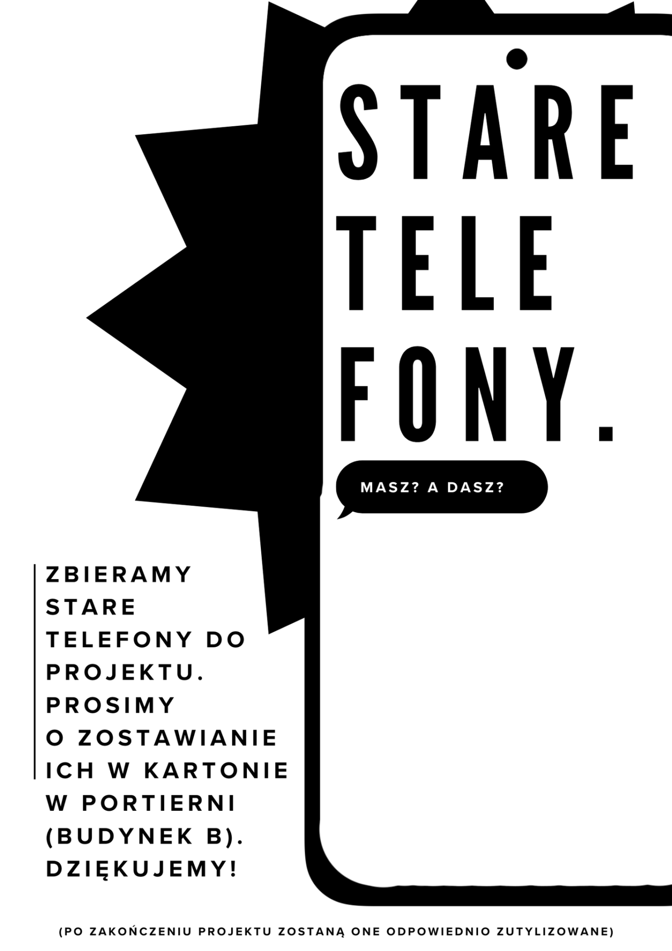 Przygotowujemy ze studentami akcję uliczną, która odbędzie się 24.11 na półwiejskiej. Akcja „odpępienie” będzie dość efektowna, akcji towarzyszy film dokumentujący przygotowania i wykon. Żeby się udała, potrzebujemy sporo nieczynnych smartfonów, zbieramy je po swoich domach i po ludziach, mamy już trochę takich aparatów, ale potrzeba więcej.