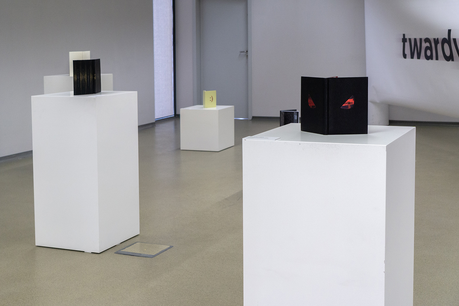 Wystawa Twardy zapis jest złudzeniem pokazuje, że żadna książka nie narzuca jednej interpretacji, lecz zaprasza do współobecności – nie jest ostatecznym nośnikiem wiedzy ani idei, lecz punktem wyjścia do dalszego myślenia. Prezentowane oprawy artystyczne klasycznych tekstów oraz autorskiej książki, traktowane jako medium krytycznego dialogu, wykorzystują materialną formę książki, by wprowadzać w obieg komunikaty podważające utrwalone wzorce i proponujące inne sposoby widzenia kultury i społeczeństwa. W polu sztuki, które realnie oddziałuje na sposób myślenia o rzeczywistości, wybór materiałów, konstrukcja oprawy i ślady użytkowania stają się argumentami w dyskusji nad znaczeniem tekstu i jego miejscem w kulturze – dyskusji, która wciąż pozostaje otwarta, procesem bez ostatecznego rozstrzygnięcia, lecz wpływającym na to, jak interpretujemy świat.