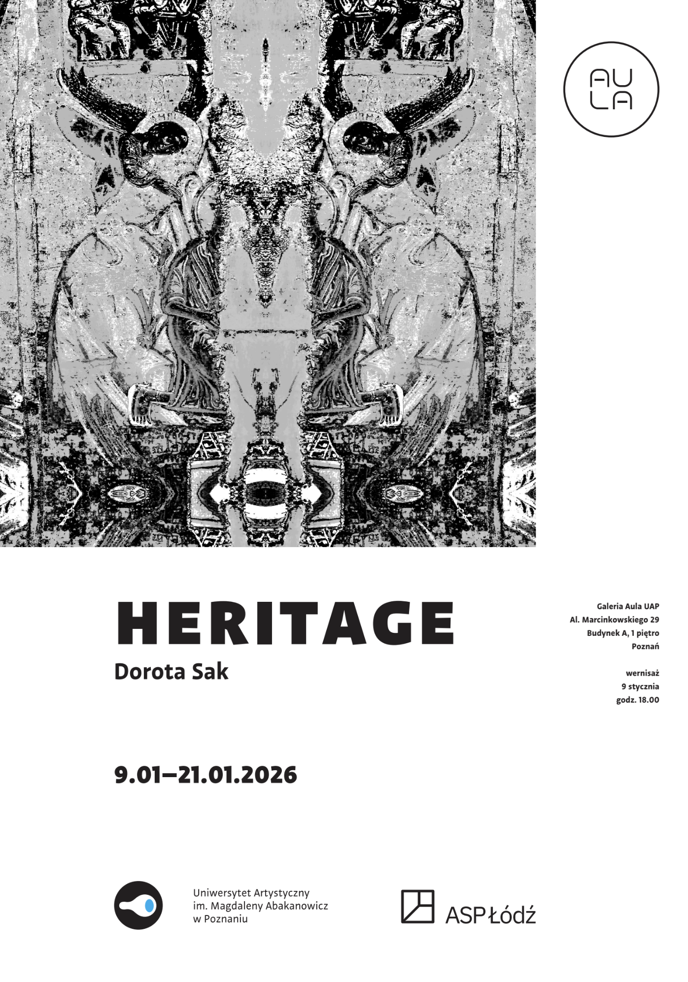 Galeria Aula UAP, Al. Marcinkowskiego 29, Budynek A, 1 piętrowernisaż: 09.01.2026, godz. 18.009.01 – 21.01.2026