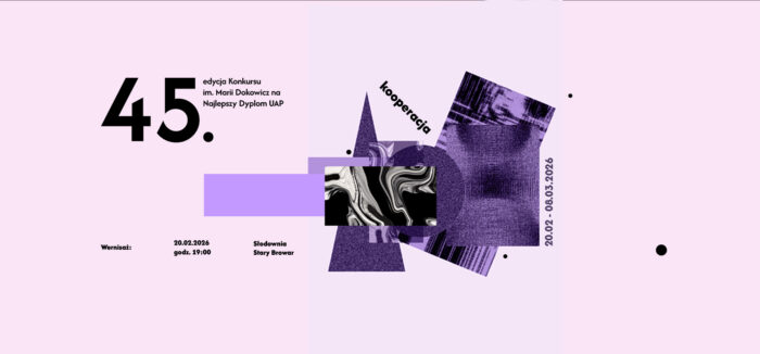 Wyniki 45. edycji Konkursu im. Marii Dokowicz na Najlepszy Dyplom UAP W miniony piątek 20 lutego 2026 poznaliśmy wyniki 45. edycji Konkursu im. Marii Dokowicz na Najlepszy Dyplom UAP stworzony w roku akademickim 2024/2025. Wszystkie prace nominowanych w tegorocznej edycji osób można oglądać do 8 marca na wystawie prezentowanej na terenie poznańskiego Starego Browaru w Słodowni. Tegoroczna wystawa to 26 dyplomów i 26 różnych spojrzeń na świat. Jest tu energia, różnorodność i świeże pomysły, ale też ważne pytania o to, jak żyjemy i dokąd zmierzamy. Sztuka nie ucieka od rzeczywistości – przeciwnie, dotyka codziennych spraw, relacji, przestrzeni miejskich, technologii i nauki.Hasło tegorocznej edycji brzmi – KOOPERACJA – bo dziś to właśnie współpraca, dialog i łączenie różnych perspektyw stają się kluczem do tworzenia sztuki, która ma realny