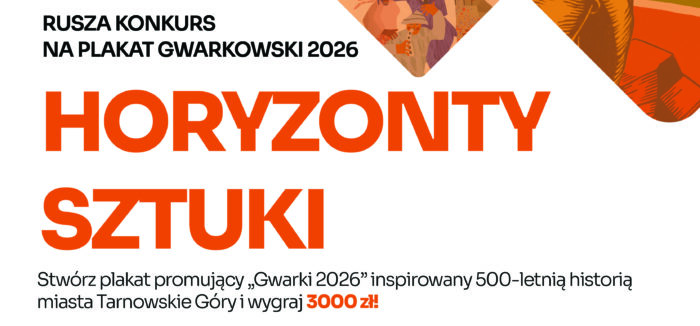Konkurs – Horyzonty Sztuki 2026 serdecznie zapraszamy do udziału w drugiej edycji konkursu artystycznego „Horyzonty Sztuki: Plakat Gwarki 2026”. Celem konkursu jest opracowanie projektu plakatu promującego tegoroczną edycję Gwarków, święta miasta Tarnowskie Góry, organizowanego od 1957 roku. Inspiracją dla uczestników będzie jubileusz 500-lecia miasta, przypadający w bieżącym roku. Termin nadsyłania prac upływa 15 kwietnia br. Nagroda główna w konkursie wynosi 3000 zł. link do zgłoszenia:https://tck.net.pl/2026/01/30/horyzonty-sztuki-plakat-gwarki-2026/