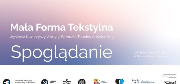 Mała Forma Tekstylna “SPOGLĄDANIE” Miejsce: Galeria Curators’ Lab, ul. Nowowiejskiego 12, PoznańCzas trwania wystawy: 11-26.10.2025 Otwarcie połączone z V Biennale Tkaniny Artystycznej w Poznaniu: 11.10.2025 roku | godz. 15:00 | Galeria Słodownia +1, Stary Browar w Poznaniu Osoby uczestniczące MFT: Danica Doležalová Bagel | Ewa Bilska | Aleksandra Bonikowska | Paulina Buźniak| Magdalena Chomiak | Agata Ciechomska | Olivia Kaufmann | Anna Więckowska-Kowalska | Agata Kustwan | Varvara Kurakina | Elżbieta Kuźniar | Kinga Ludek | Maciej Mesznik | Natalia Mikołajczyk | Natalia Murdza | Aleksandra Parol | Diana Pawlaczyk | Paulina Poczęta | Beata Prochowska | Paulina Sadrak | Kenji Sato | Anna Sołtysiak | Daria Sukhina | Marianna Lisiecka-Syska | Ewelina Barat Szakińska | Anastasiia Yurkova | Alicja