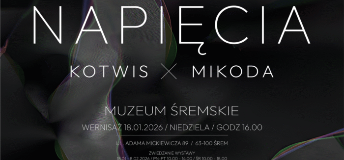 Kotwis x Mikoda – Stan Napięcia 18.01.2026, godz. 18:00Muzeum Śremskie, ul. Adama Mickiewicza 89, 63-100 Śrem18.01-08.02.2026 Rafał Kotwis Kierownik I Pracowni Rzeźby – Studyjnej, wykładowca przedmioty Techniki komputerowe w rzeźbie. Jego praktyka twórcza lokuje się w obszarze szeroko rozumianej rzeźby, traktowanej jako pole badań nad relacją formy, technologii i współczesnych modeli percepcji. Brał udział w licznych wystawach indywidualnych i zbiorowych w kraju oraz za granicą, m.in. w Niemczech, Belgii, na Słowacji, w Czechach, Ukrainie, na Litwie i w Tajlandii. We wczesnym etapie twórczości podejmował problem estetyzacji codzienności, analizując ją jako proces prowadzący do anestetyzacji doświadczenia – rozumianej jako kulturowa dysfunkcja polegająca na osłabieniu zdolności krytycznego i afektywnego odbioru rzeczywistości. Rzeźba funkcjonowała wówczas jako narzędzie diagnozy mechanizmów neutralizacji znaczeń i nadprodukcji