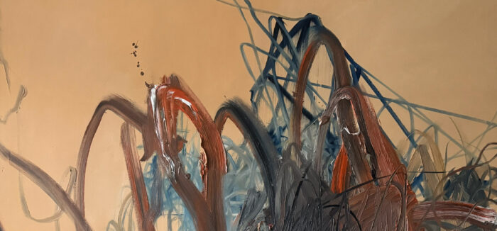 ANNA KOŁACKA – DASH Otwarcie 30.01.2026, godz. 18:00Wystawa czynna do 15.03.2026Kuratorka: Małgorzata Kopczyńska Anna KołackaDASH(z ang.: kropla, pęd, buńczuczność, mieszanka, kruszyć, barwna plamka, rozmach…) „Fascynuje mnie świadomość, że jesteśmy częścią jednego ekosystemu, że wszystkimi organizmami, związani procesami, których nie dostrzegamy.” [Anna Kołacka] Oglądając obrazy Kołackiej granica między przedstawieniem, a abstrakcją umyka. Plątanina, gąszcz przenika się wzajemnie, nie dając się zapamiętać. Wyławiamy szczegóły, oglądamy całość, lecz sama kompozycja przypomina kalejdoskop. Obrazy są w ciągłym ruchu, jak atomy, które nawet w kryształach drżą. A w strukturach organicznych, których wiwisekcję artystka przeprowadza malując, w ich ekstremalnym poznawczym zbliżeniu ten pęd dosłownie goni, rzuca się, kluczy. Rozpoznajemy szczegóły, analizujemy całość, lecz sama konstrukcja umyka, jak wiry w niespokojnej wodzie. Tworząc martwe natury z fragmentów