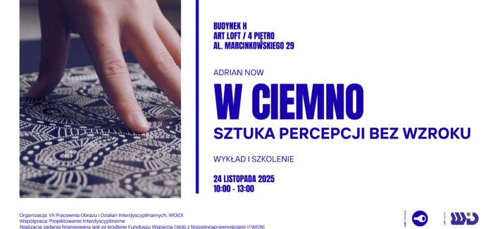 Adrian Now – W CIEMNO. Sztuka percepcji bez wzroku Budynek H, Art Loft / 4 PIĘTRO, Al. Marcinkowskiego 29Wykład i szkolenie odbędzie się 24.11.2025 w godzinach od 10.00 do 13.00. Serdecznie zapraszamy osoby studenckie na wykład i szkolenie, które poprowadzi pan Adrian Now – twórca projektu W Ciemno, działającego na rzecz dostępności i edukacji osób niewidomych. Adrian Now jest ambasadorem osób z niepełnosprawnością wzroku, edukatorem i mówcą motywacyjnym. W swoich działaniach podkreśla, że „ograniczenia istnieją tylko w naszych umysłach” oraz że technologia i świadomość społeczna pozwalają niwelować bariery percepcyjne. Jego udział w programie pozwoli osobom studiującym poznać perspektywę osoby niewidomej z autopsji i zrozumieć rzeczywisty kontekst tworzenia sztuki dostępnej. Wykład jest częścią wspólnego przedsięwzięcia dydaktyczno-badawczego„Dotyk obrazu – tyflografika. Haptyczne interpretacje dzieł