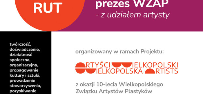 ANTONI RUT – artysta, animator kultury, prezes WZAP – z udziałem artysty 19 listopada 2025 r. o godz. 11:00Budynek H, sala 2, Al Marcinkowskiego 28, Poznań Serdecznie zapraszamy na otwarty wykład naukowy dr hab. Pawła Kiełpińskiego prof. UAP – ”ANTONI RUT – artysta, animator kultury, prezes WZAP – z udziałem artysty”, który odbędzie się z okazji 10-lecia Wielkopolskiego Związku Artystów Plastyków w dniu 19 listopada 2025 r. o godz. 11:00 w Uniwersytecie Artystycznym im. Magdaleny Abakanowicz w Poznaniu, w ramach projektu ARTYŚCI WIELKOPOLSKI | WIELKOPOLSKA ARTISTS. Budynek H, sala 2, Al Marcinkowskiego 28, Poznań.