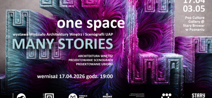 One Space / Many StoriesWystawa Wydziału Architektury Wnętrz i Scenografii UAPPop Culture Gallery @Stary Browar, ul. Półwiejska 42wernisaż: 17.04.2026, godz. 19.0017.04 – 3.05.2026 Udział biorą:Piotr Barłóg, Michał Bartkowiak, Maciej Basałygo, Marta Brennenstuhl-Bludnik, Paula Buczyńska, Sławomira Chorążyczewska, Krzysztof Cicheński, Emilia Cieśla-Jarzębowska, Bohdan Cieślak, Klaudia Dopierała, Robert Gruszewski, Karolina Grzeszczuk, Zyta Kaleta, Paweł Kiełpiński, Natalia Kliśko-Walczak, Kacper Kokociński (NIUNIA), Anna Krajewska, Dorota Kuźniarska, Kinga Ludek, Piotr Machowiak, Ewa Mróz-Pacholczyk, Weronika Musiał, Joanna Muszyńska / Mateusz Waszak (Pracownia Projektowa Muszyńska Waszak), Szymon Nawój, Katarzyna Podgórska-Glonti, Anna Regimowicz-Korytowska, Tomasz Ryszczyński, Martyna Stachowczyk, Mikołaj Stankowski, Piotr Sudak (współpraca Joanna Bozacka), Wojciech Sypniewski, Marcin Szłapka, Rozalia Świtalska, Piotr Tetlak (współpraca Ewa Tetlak), Krzysztof Urban, Weronika Węcławska-Lipowicz, Marta Wyszyńska Kuratorka: Anna BorowiecProjekt wystawy: Piotr BarłógOpracowanie 3D: Rafał