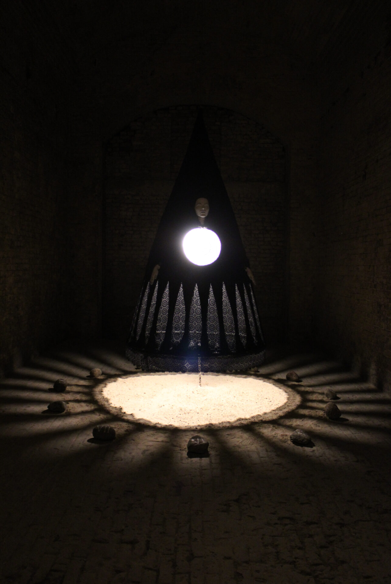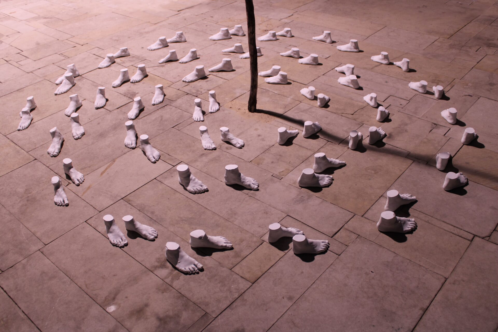instalacja: 70 figuratywnych form gipsowych na planie koła o średnicy ok. 700 cm
