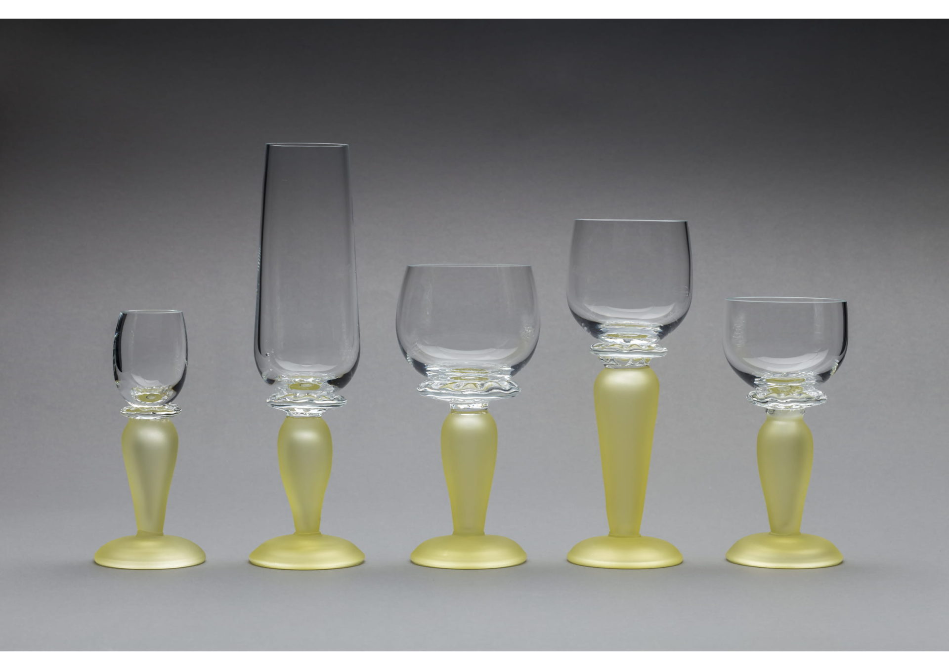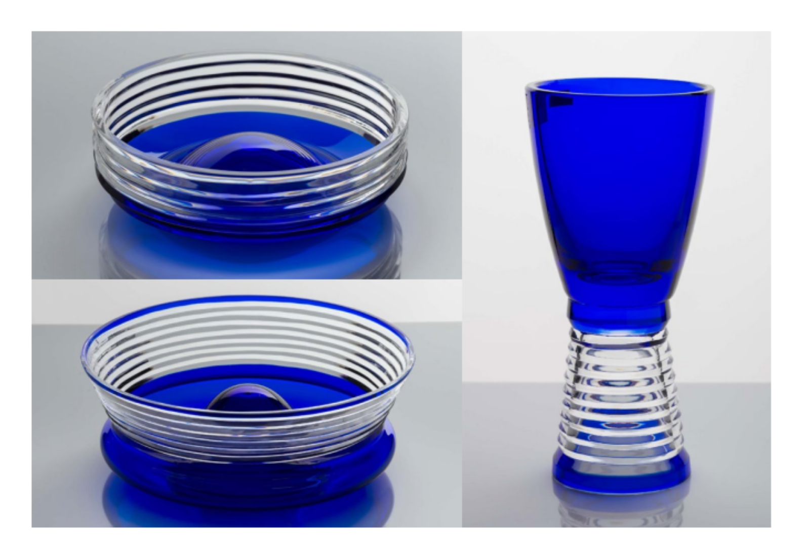 prezentowano: ZESTAW KONKURSOWY – 3 obiekty z kolekcji naczyń ze szkła kryształowego (wyróżnienie Dobry Wzór 1995)