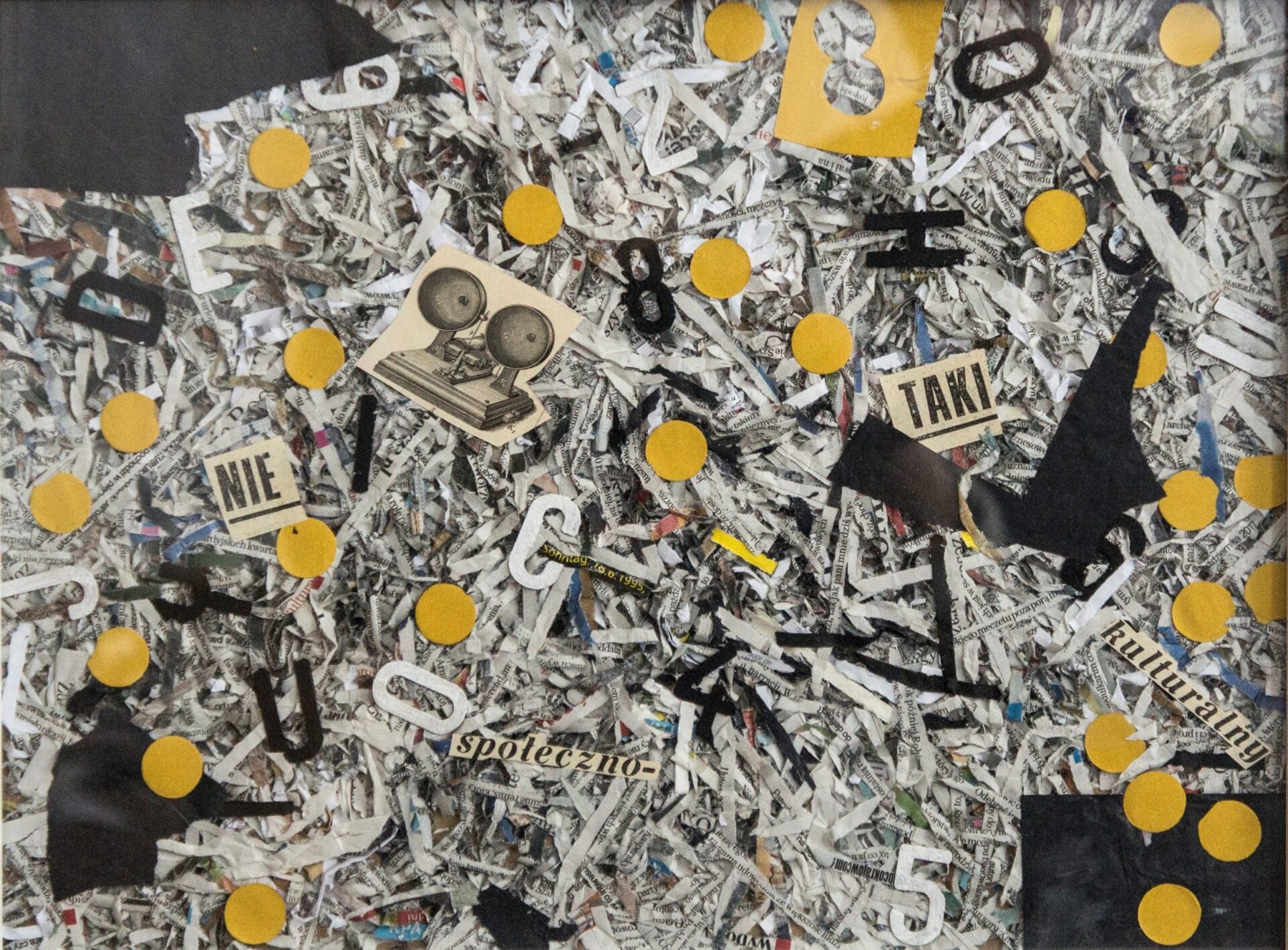4 kolaże pt.: NIE TAKI SPOŁECZNO-KULTURALNY (30 x 40 cm); HEPPENING I RZECZYWISTOŚĆ (30 x 40 cm); LOŻA SZYDERCY (21 x 30 cm); MÓWIĆ O TYM? ALE JAK? (30×40 cm) / upublicznione na wystawie SERIE I EDYCJE / kuratorka: Bożena Czubak / Fundacja Profile, Warszawa (2024)