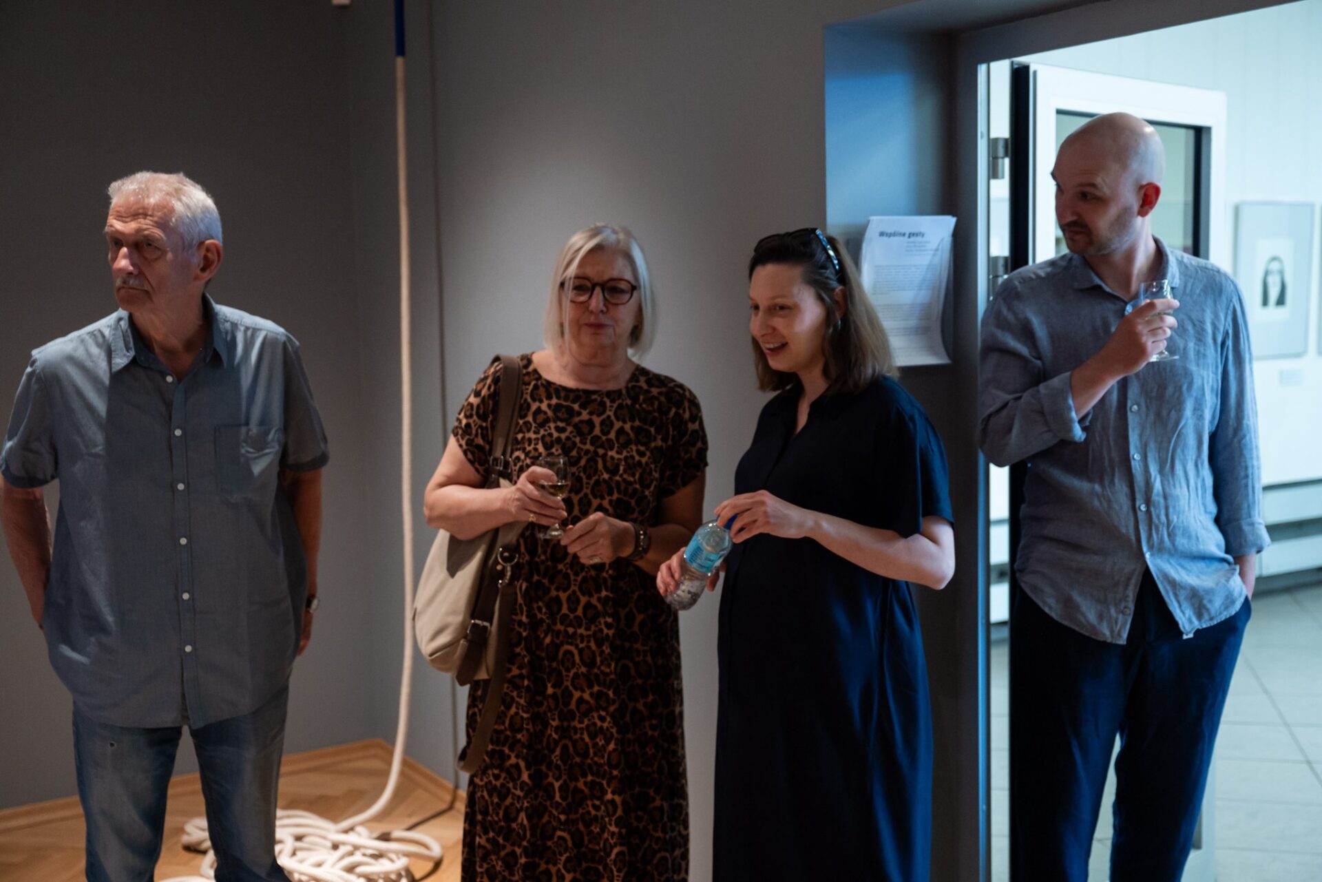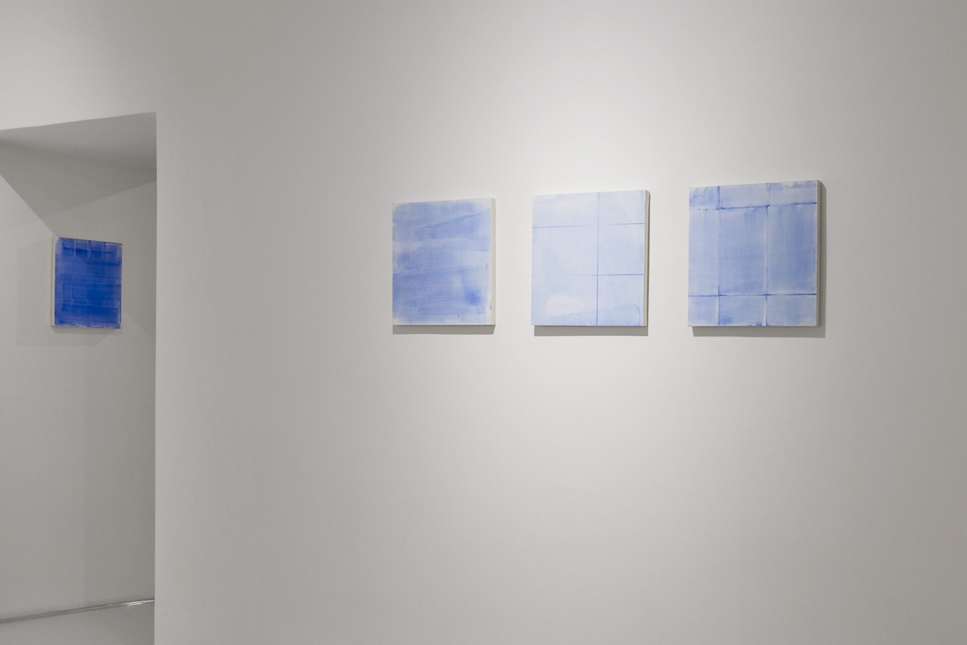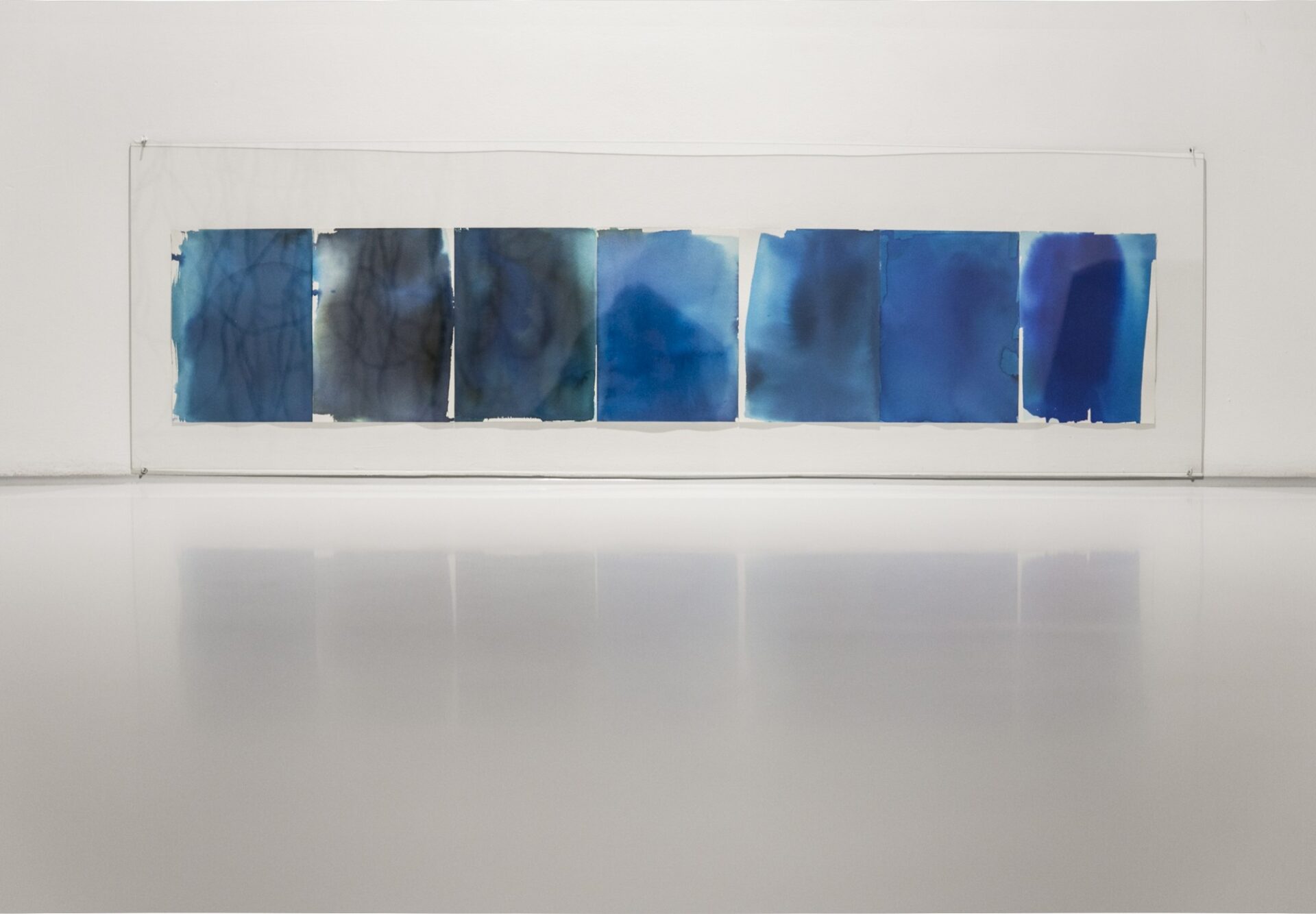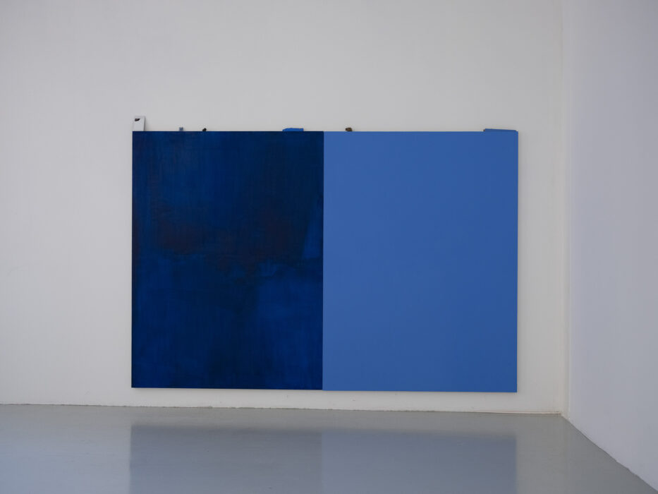 akryl na płótnie, 15 x 400 cm, obiekty: LIFE-LINA 2, połączone liny, UTRZYMUJĄC RÓWNOWAGĘ, deska, kamienie, GŁĘBIA, instalacja malarska, z cyklu ĆWICZENIA Z NAWIGACJI, akryl na płótnie + lina, 40x40cm / prace zaprezentowane premierowo na wystawie pt. (NIE)WIDOCZNE WYSPY, kuratorka: B. Błażewicz / Galerie Hafemann w Wiesbaden (2025)