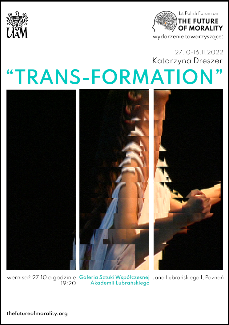 ndywidualna wystawa prac graficznych: 12 tryptyków i 3 dyptyki 140 x 70 cm, tech. cyfrowa / kurator: Joanna Daszkiewicz / w ramach I Polskiego Forum Przyszłości Moralności / org. Uniwersytet im. Adama Mickiewicza w Poznaniu / Galeria Sztuki Współczesnej-Akademia Lubrańskiego, Poznań (2022)