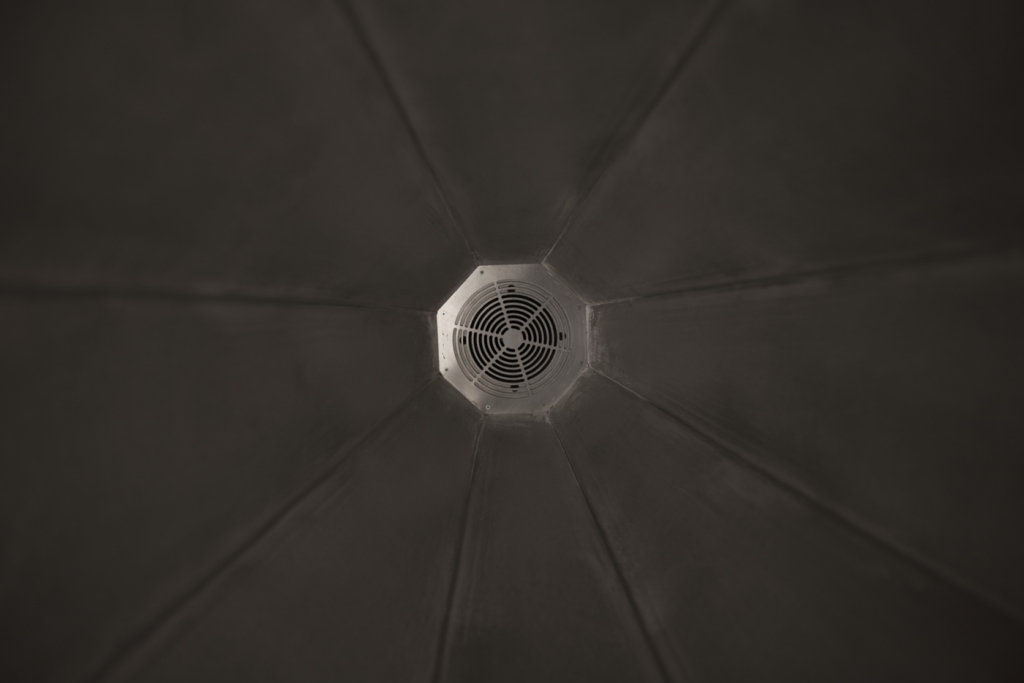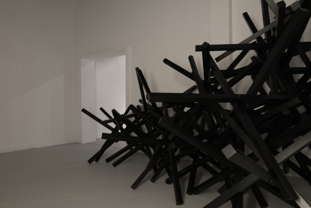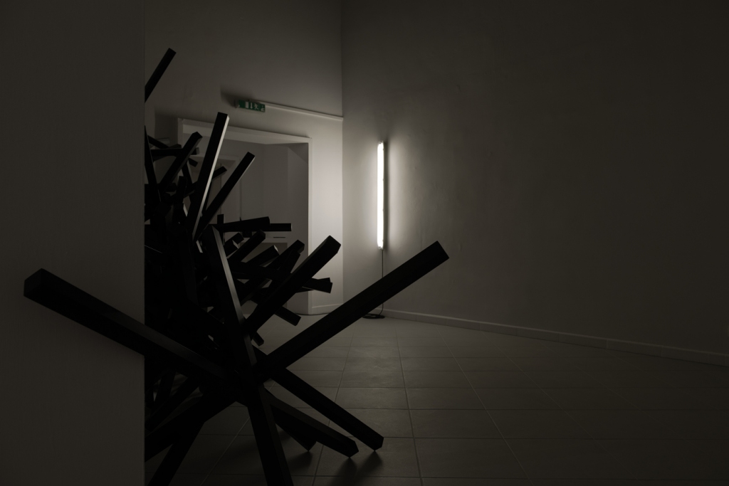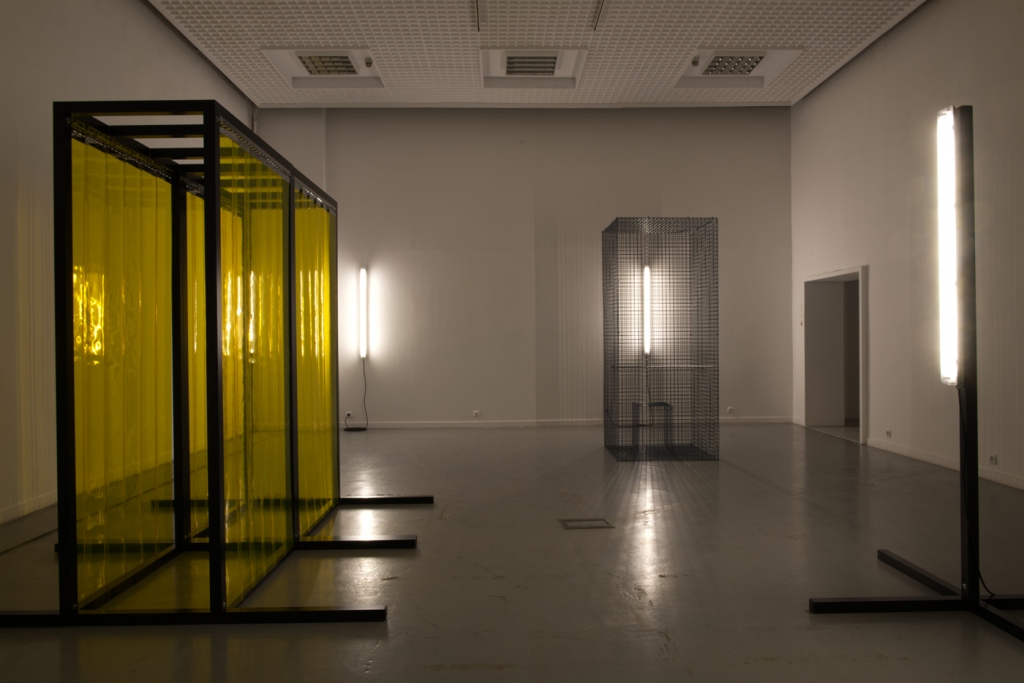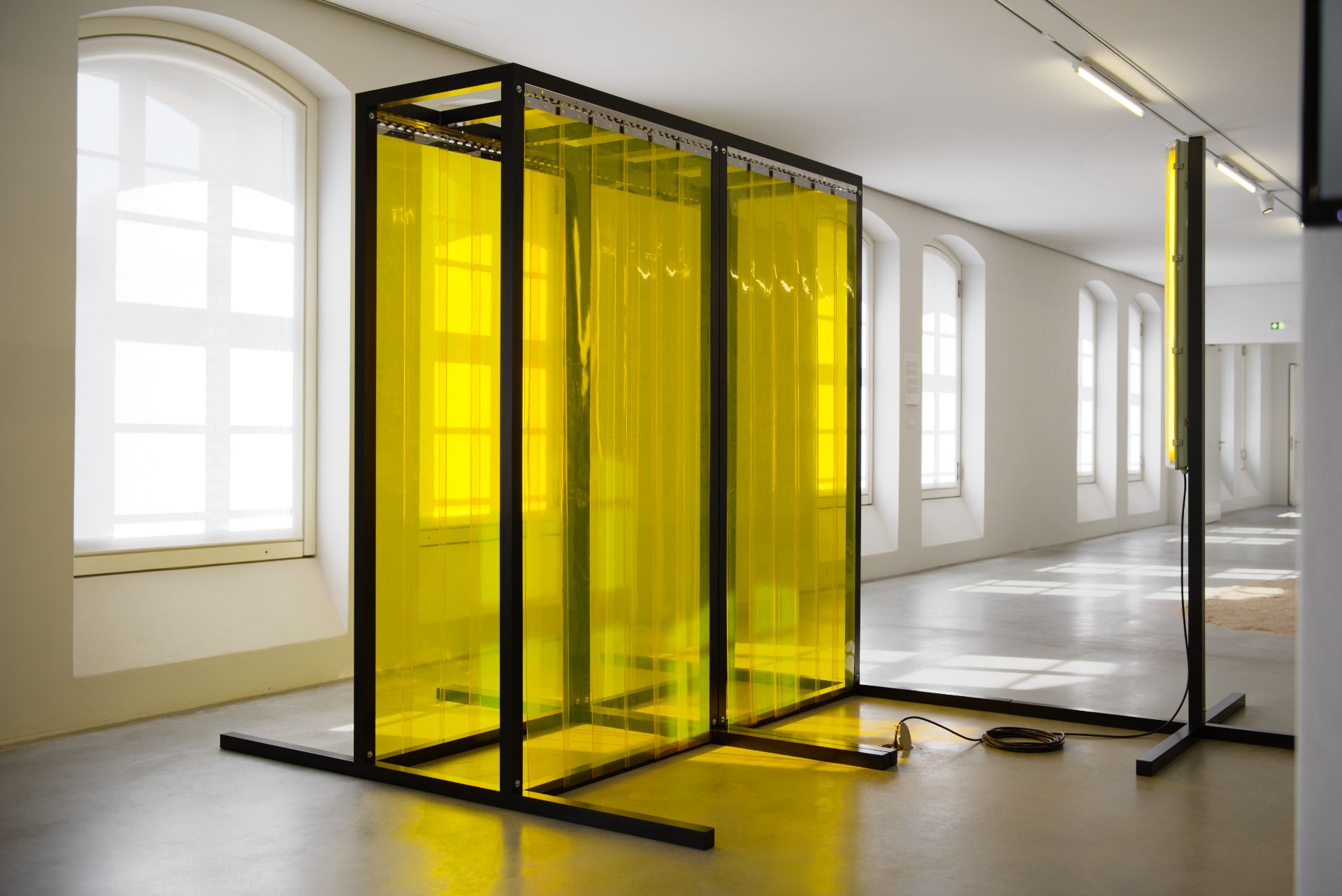 kuratorki: B. Dogramaci, M. Smolińska / pokazano: CELLULA aluminium czarne, przezroczyste, żółte pasy PVC o zapachu trawy cytrynowej, lampa oraz SPIDERS 5- 2 obiekty, stal zaślepki, Zentrum für Aktuelle Kunst Spandau, Berlin
