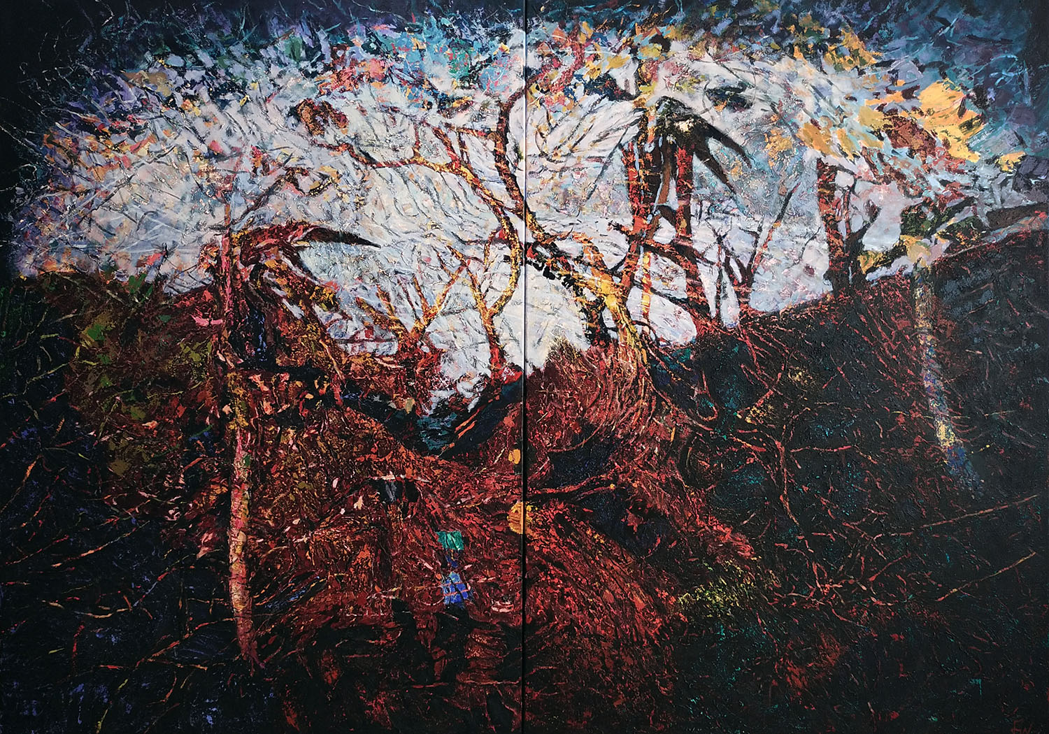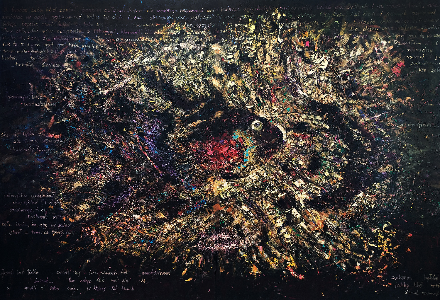 11 obrazów 120 x 170 cm, 2 obrazy 170 cm x 240 cm, obraz 170 x 290 cm, tryptyk grafik formatu A5