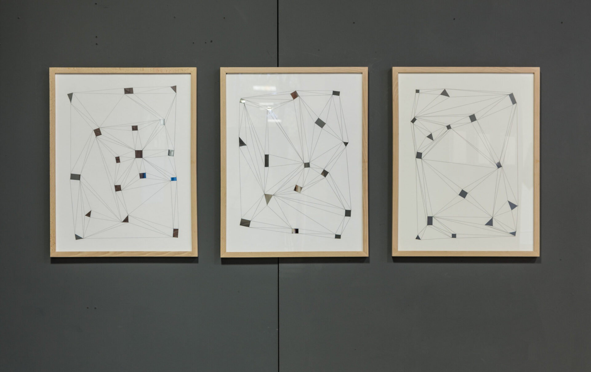 rysunki z wklejonymi maleńkimi lusterkami, format każdej z prac 65 x 50 cm