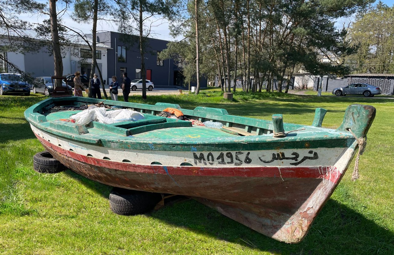 obiekt site-specific – autentyczna łódź uchodźców, na stałe w kolekcji w galerii Fundacji Signum jako mobilny pomnik problemu migracji w ArtFolwark w Wojnowie