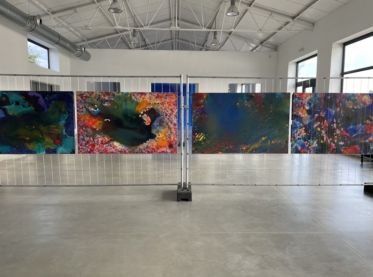 prezentowano 6 obrazów z cyklu ,,Liczba pociągnięć pędzla w obrazie” (akryl na płótnie)