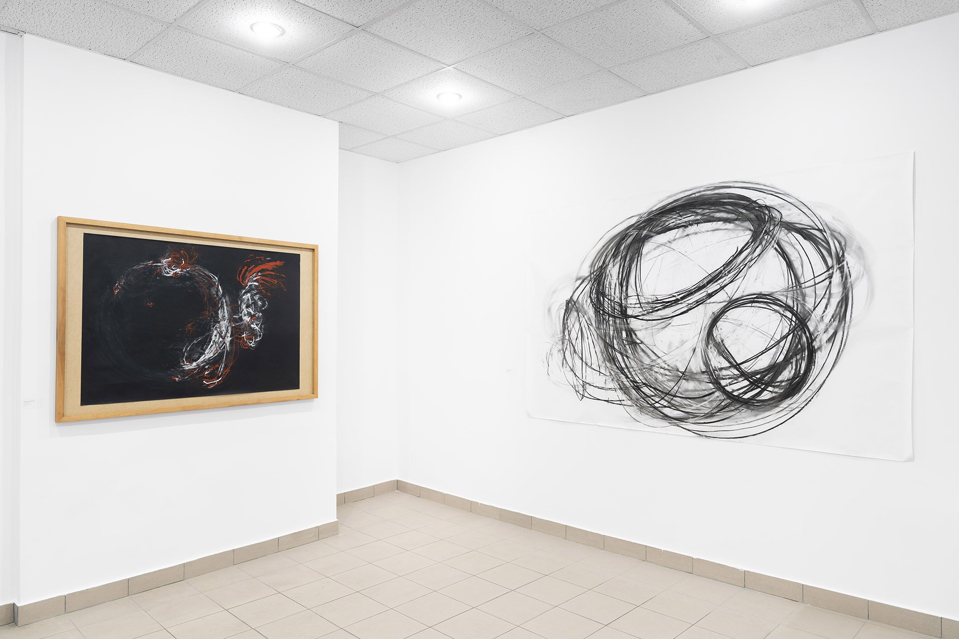 rysunek na papierze 150 x 237 cm, technika własna; FONOSFERY, rysunek na czarnym kartonie 90 x 130 cm, technika własna