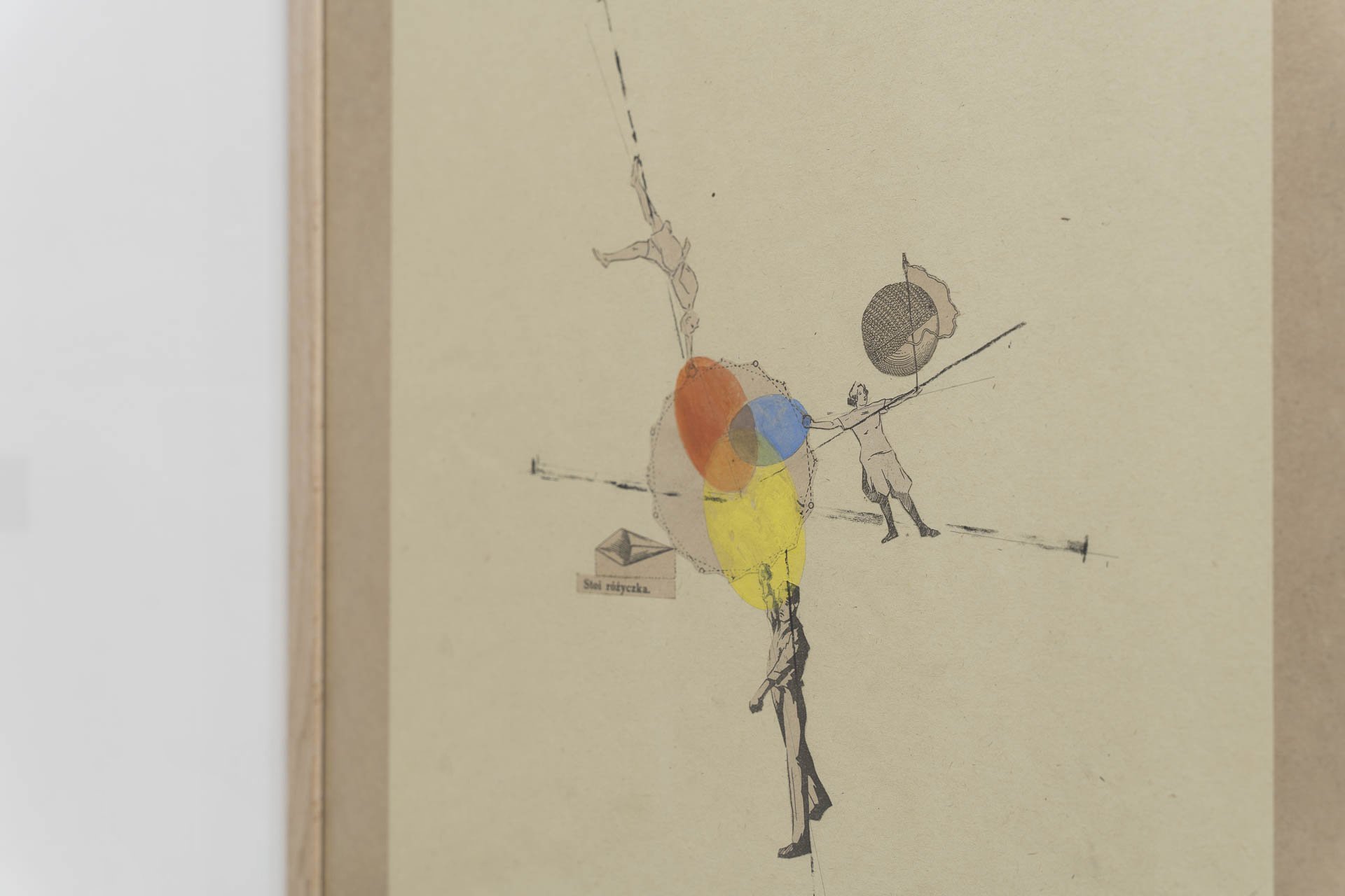rysunek, kolaż, technika własna na papierze, wym. 39 x 52 cm
