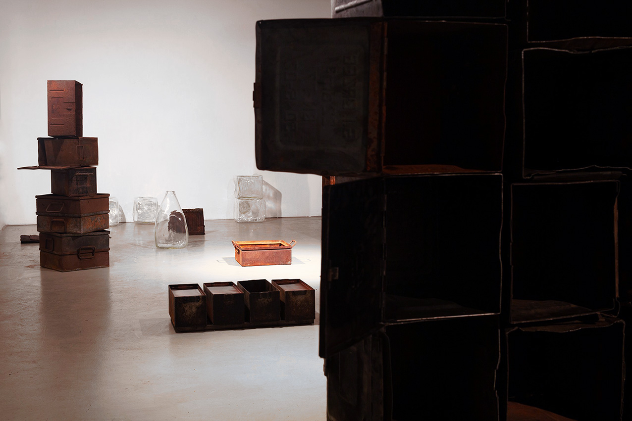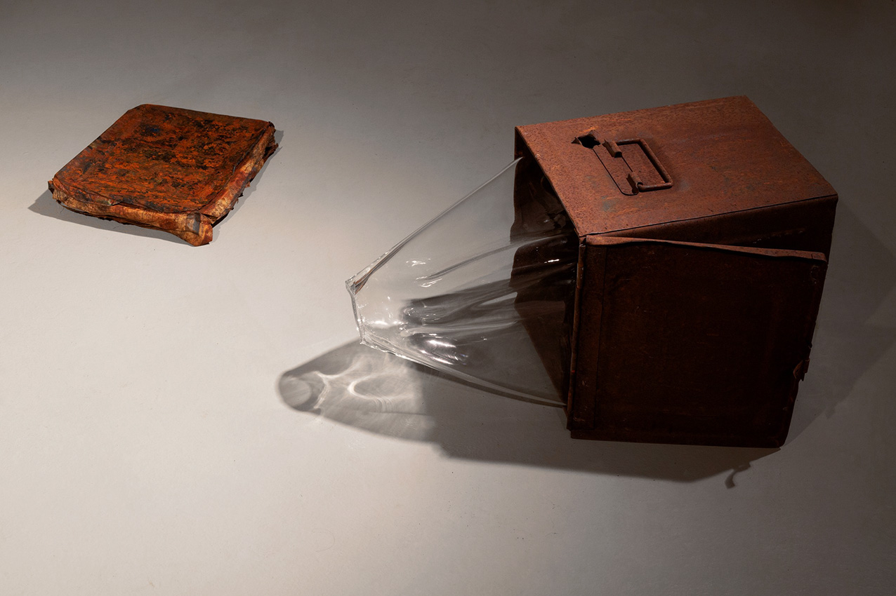 wystawa indywidualna: instalacja artystyczna złożona z 14 obiektów wykonanych ze szkła, metalowych skrzynek, wody, żywicy, papieru / Galeria AT, UAP w Poznaniu (2023)