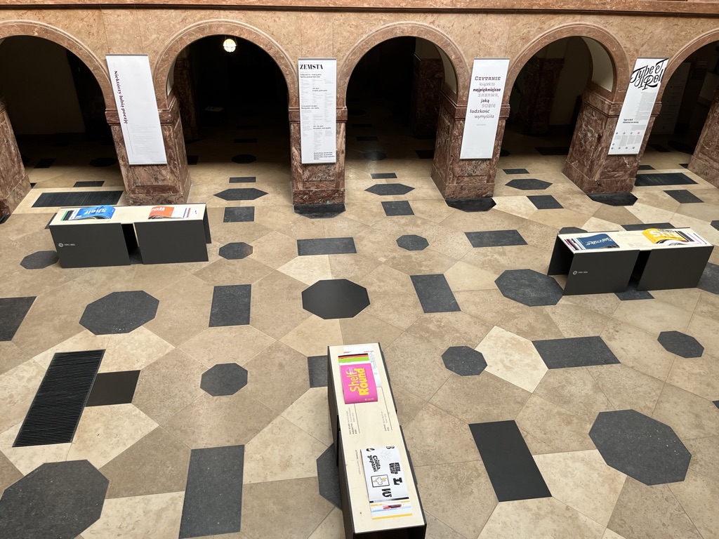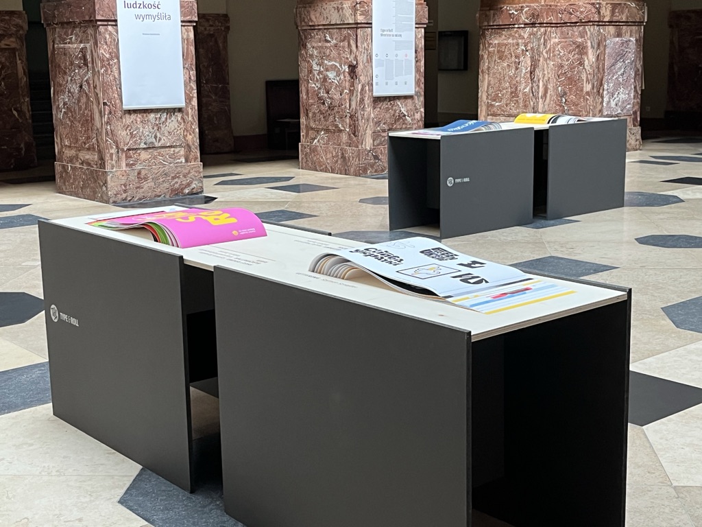 aranżacja wystawy kolektywu typograficznego Type & Roll / kuratorka: Katarzyna Krzak-Weiss / Collegium Maius, Uniwersytet im. Adama Mickiewicza w Poznaniu (2023)