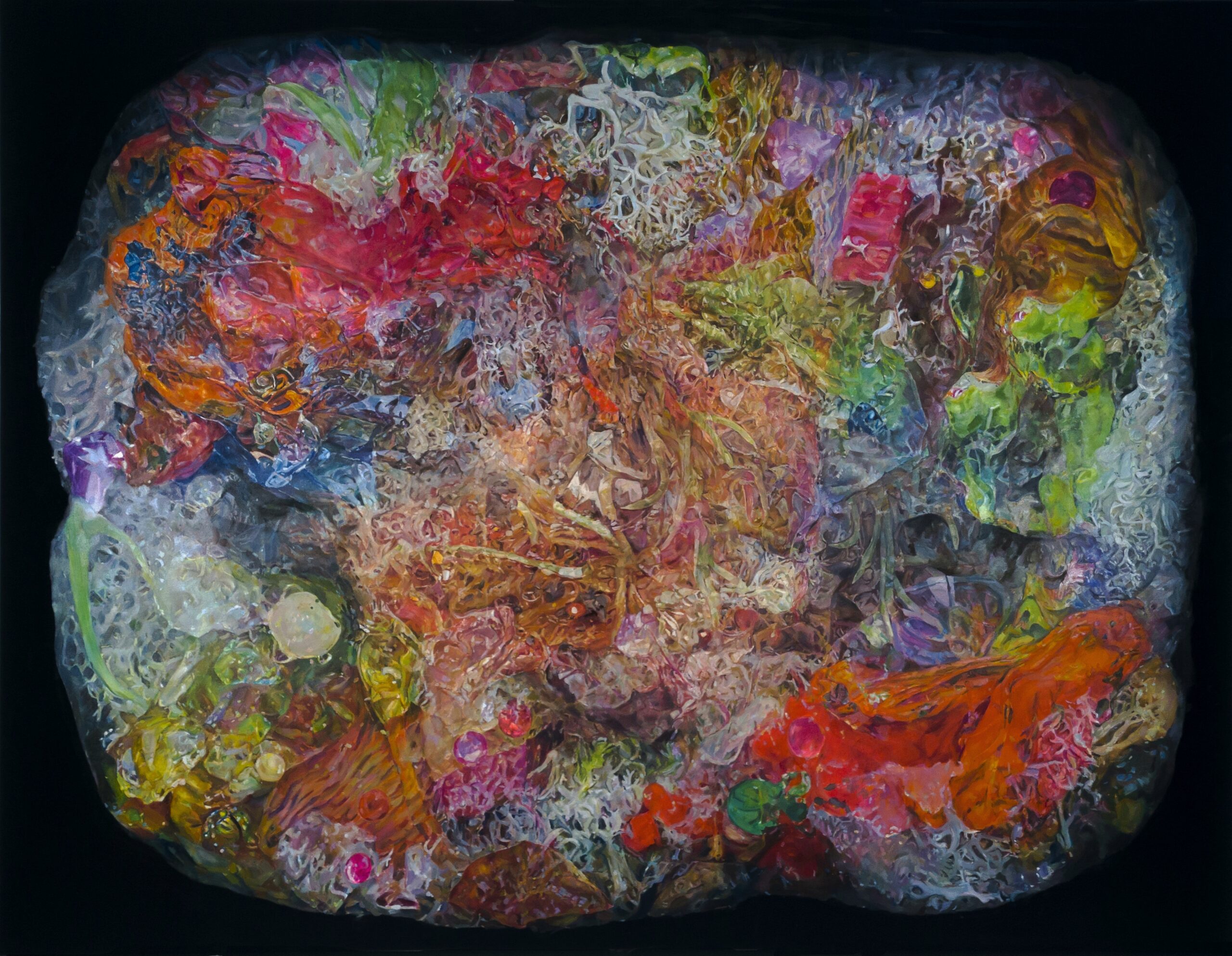 „Praca malarska stanowi dla mnie długi, ale bardzo ważny proces przemiany martwej tkanki farby w migotliwą, dynamiczną strukturę. Pytam o “życie” natury i jej pochodzenie oraz budowę samej materii, szczególnie w skali mikro-. Poprzez (często) drobne ruchy pędzla, poszukuję najdrobniejszych zmian w odcieniach pigmentu i wykorzystuję organiczny potencjał farby olejnej. Monumentalna skala prac jest inspirowana immersyjnością zjawisk naturalnych. Zależy mi, by odbiorca mógł “wejść do obrazu” i był przez niego pochłonięty. Próbuję tworzyć świat posthumanistyczny, inspirowany budową rzeczywistości, ale bez obecności człowieka.”