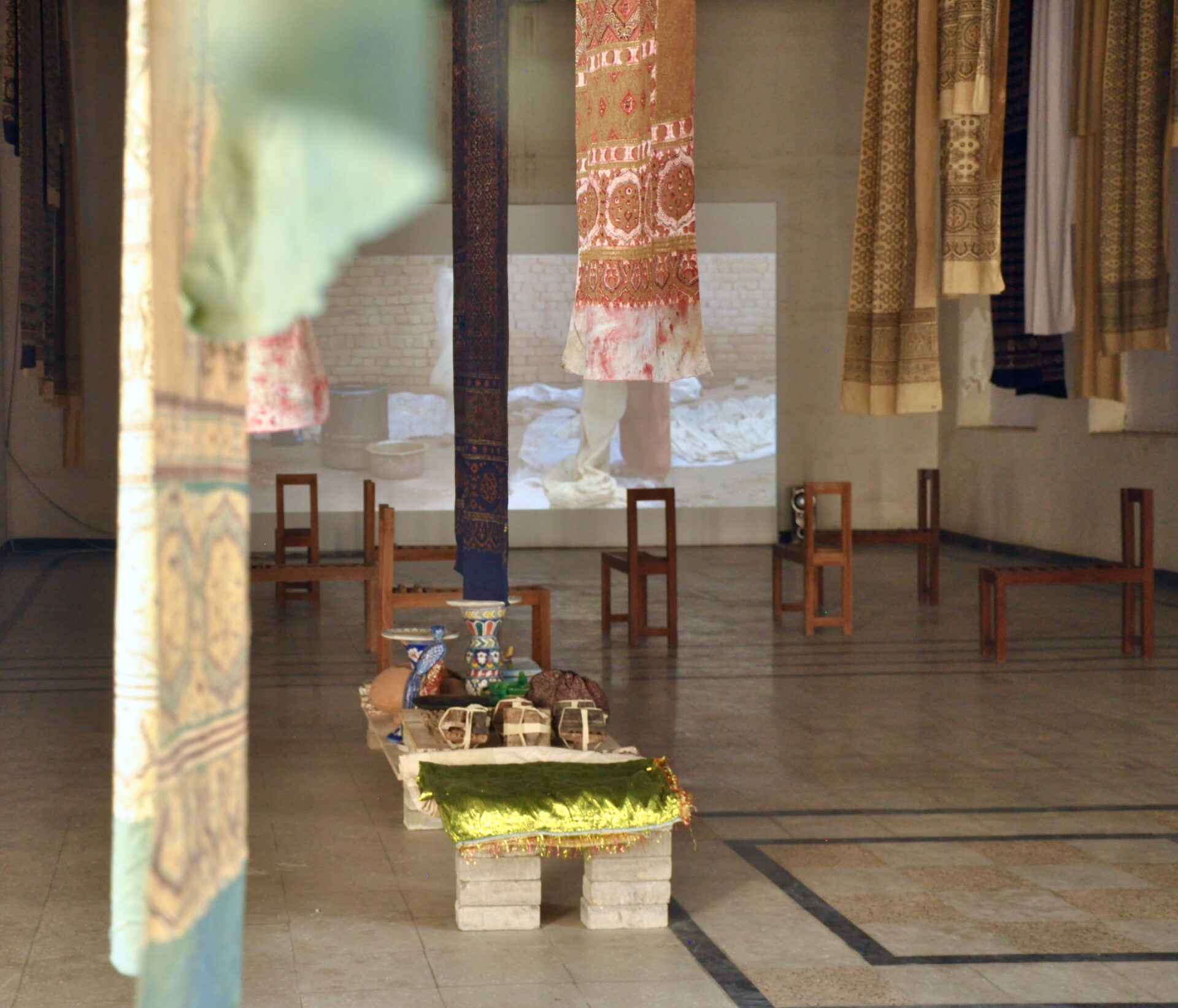 instalacja site specific: obiekty rzemieślnicze, esej filmowy (56 min) / prezentacja w ramach 4. Biennale Sztuki w Karachi (BK24) / kuratorka: Waheeda Baloch/ Liaquat Memorial Library, Karachi, Pakistan