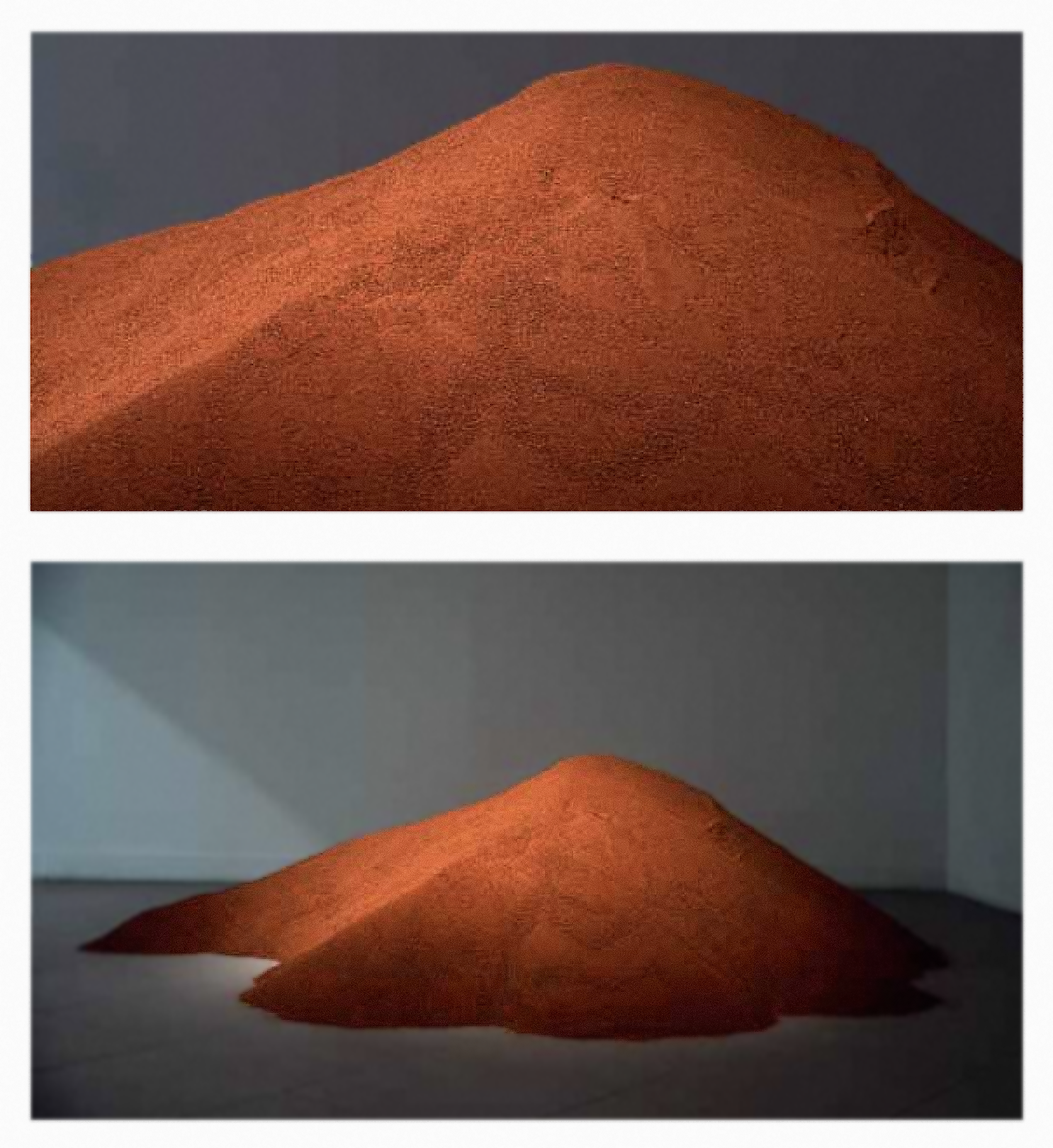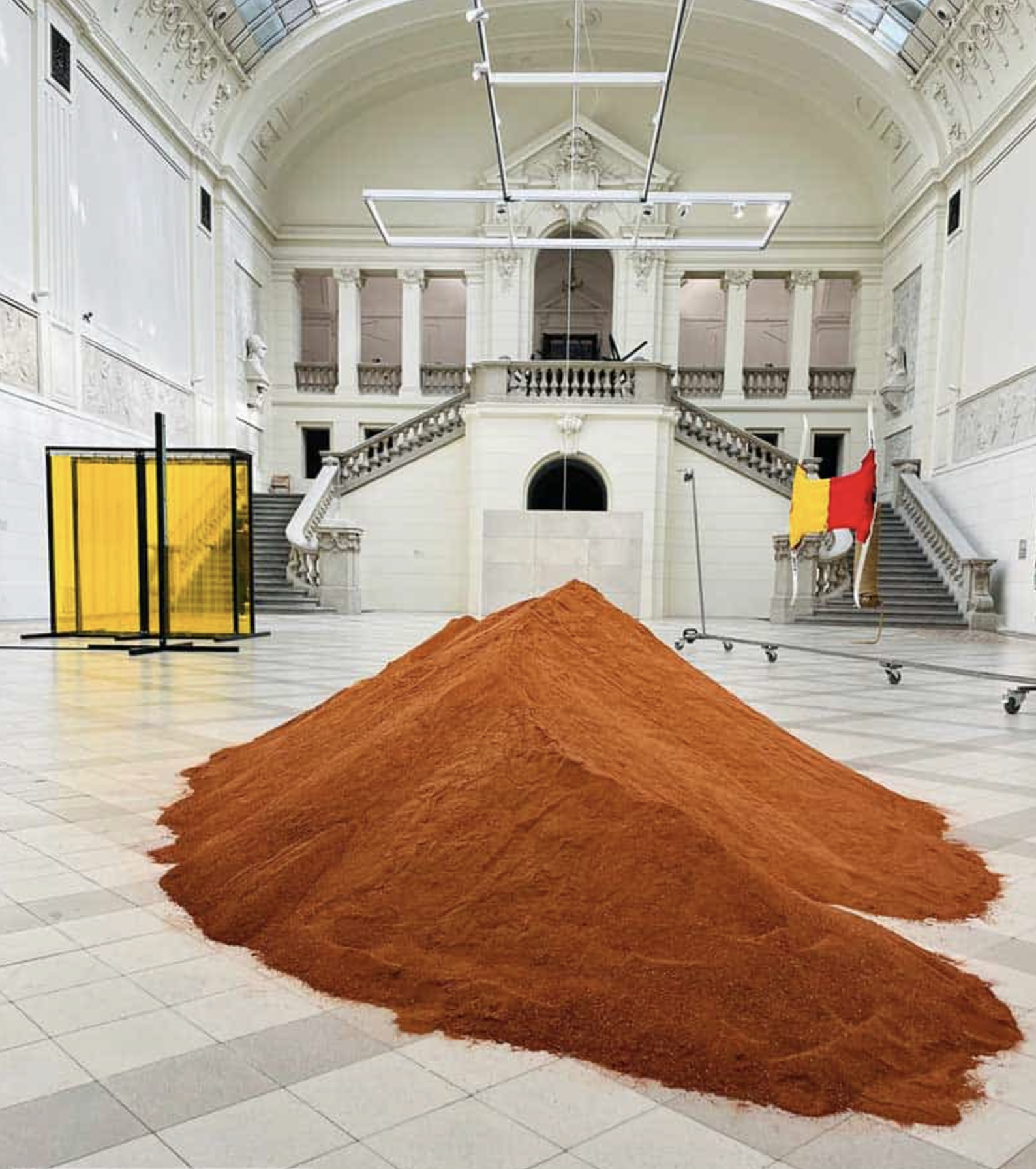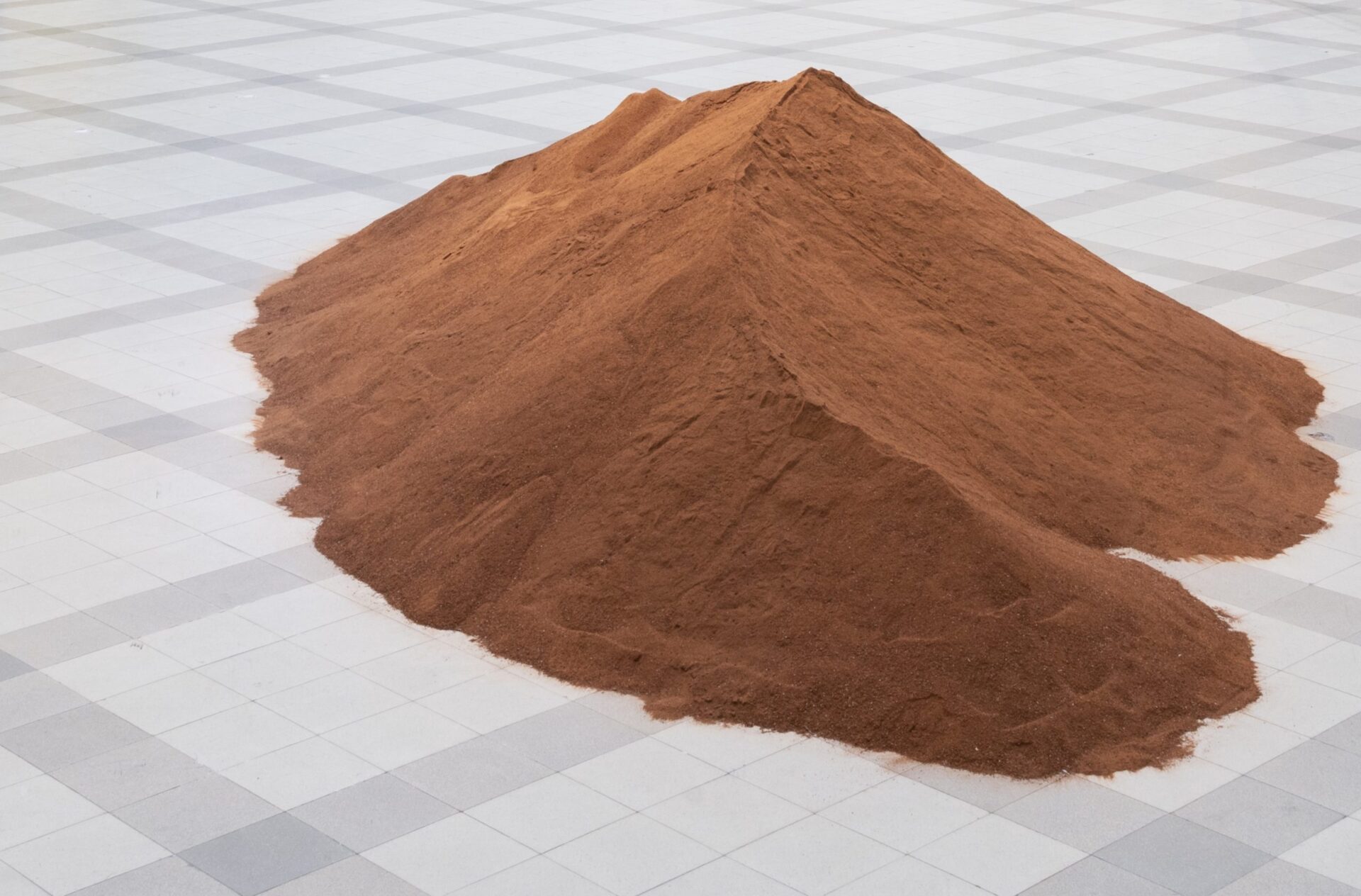 2020-2023, instalacja, pył ceglany ok. 950 kg / premierowa prezentacja na wystawie międzynarodowej pt. O DZIELENIU. SZTUKA NA GRANICY (POLSKO-NIEMIECKIEJ) / kuratorki: Marta Smolińska, Burcu Dogramaci / Muzeum Narodowe w Poznaniu (2023)