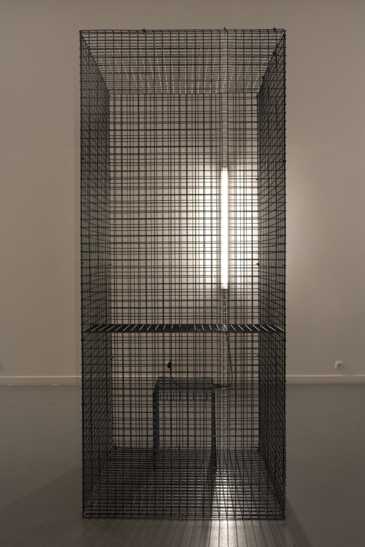 wielkoformatowe dzieło quasi – rzeźbiarskie, siatka zgrzewana Weldmesh, zacisk linowy, emulsja światłoczuła, 200 x 100 x 100 cm / upublicznienie na dwuautorskiej wystawie pt. SYGNAŁY i SZUM/ kurator: Gustaw Nawrocki / MOS, Gorzów Wielkopolski (2022)