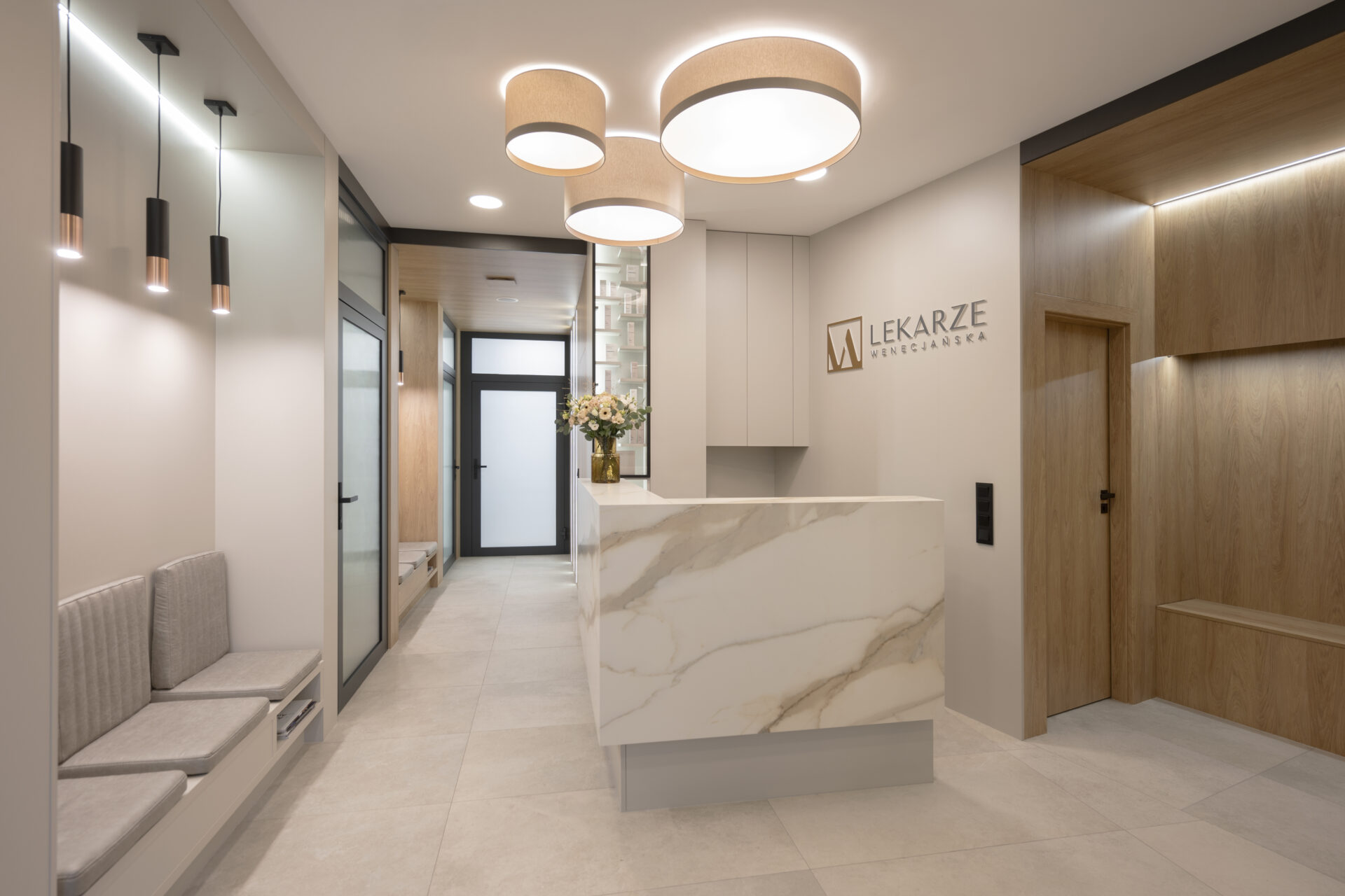 PROJEKT WNĘTRZ I WYPOSAŻENIA WIELOSPECJALISTYCZNYCH PRYWATNYCH GABINETÓW LEKARSKICH W POZNANIU “LEKARZE WENECJAŃSKA”, ul. Wenecjańska w Poznaniu. Kompleksowy projekt indywidualny. 2024