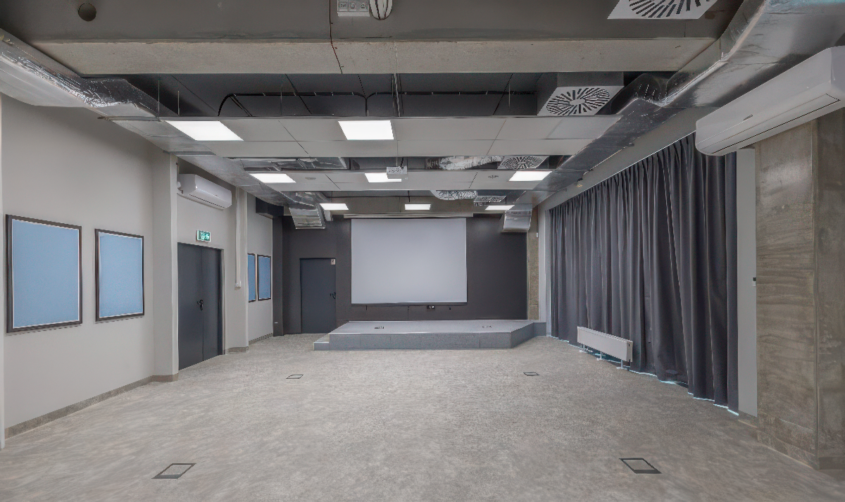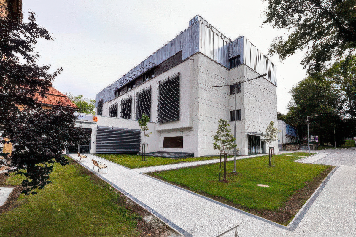 PROJEKT CENTRUM SYMULACJI MEDYCZNEJ UNIWERSYTETU MEDYCZNEGO IM. KAROLA MARCINKOWSKIEGO W POZNANIU; 2014; Pow. bud. 6194 m2; Opracowanie elewacji budynku, wnętrz auli.
