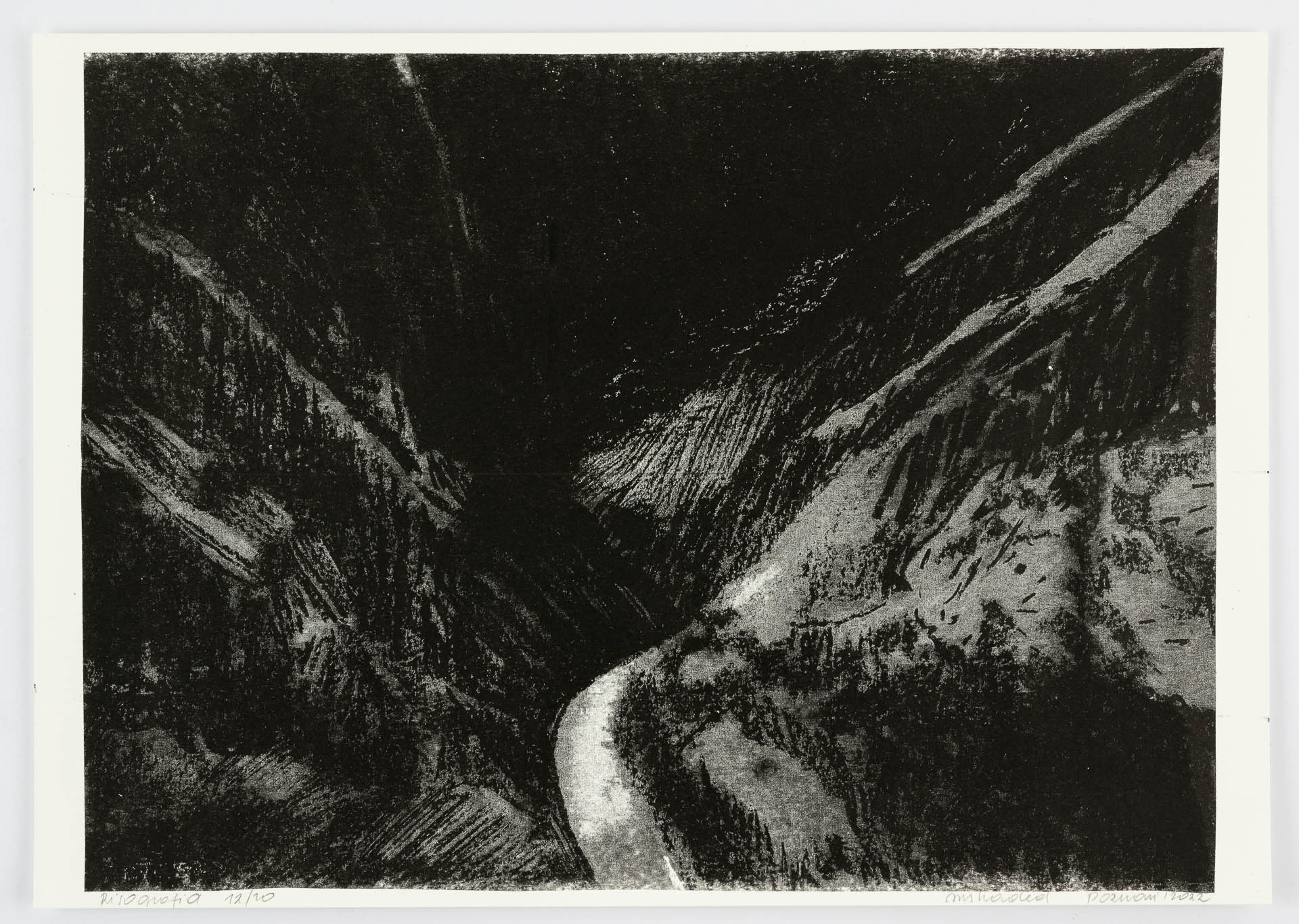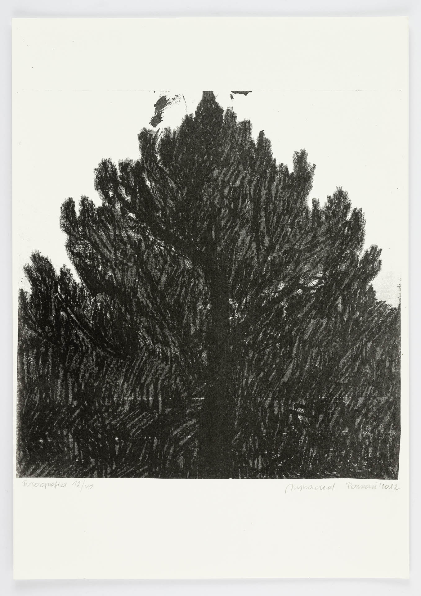 12 rysunków w technice tłustej pasteli na papierze, wym. 29,7 x 42 cm, 1 rysunek na papierze, wym. 100 x 450 cm zawieszony w przestrzeni