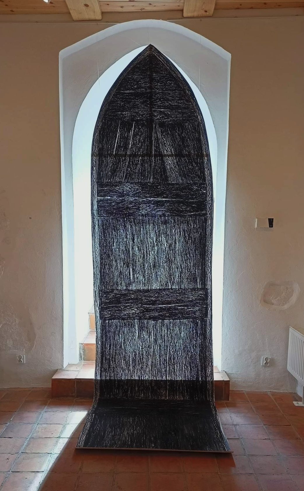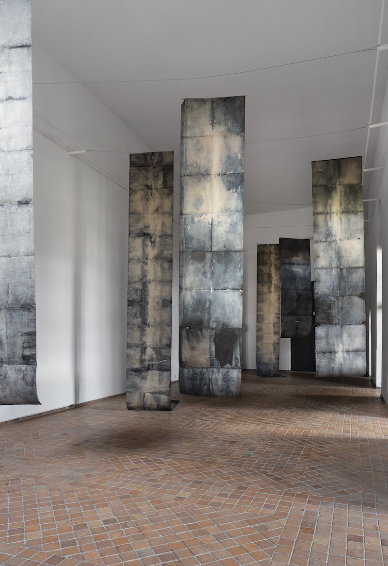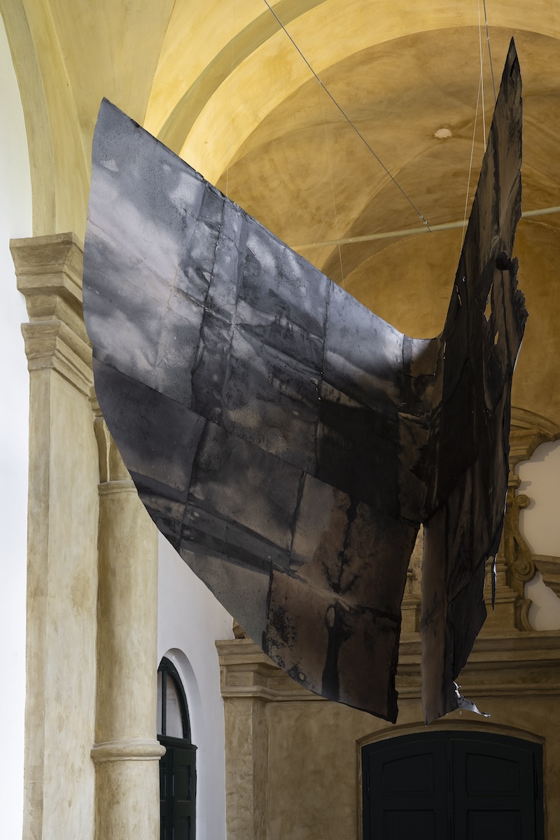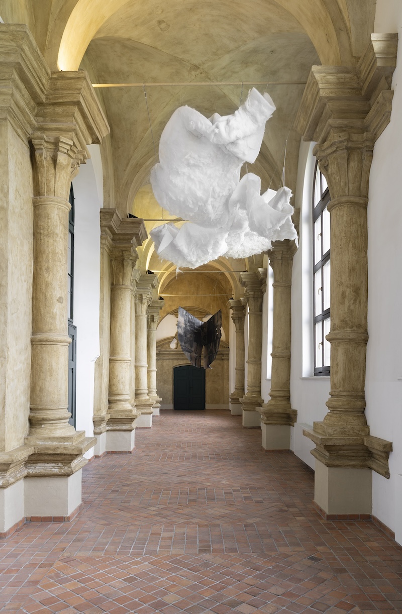 dzieła premierowe: OBŁOK, tkanina art. 4 x 8 m, ICARUS, papier barwiony, 2 x 2 x 4 m oraz SZTANDARY, papier barwiony, 7 rysunków 1 x 6,5 m