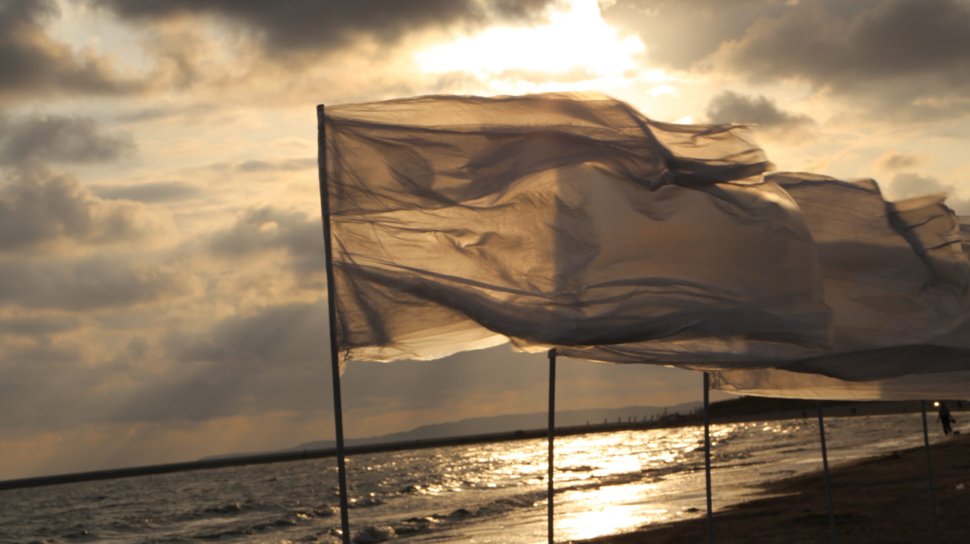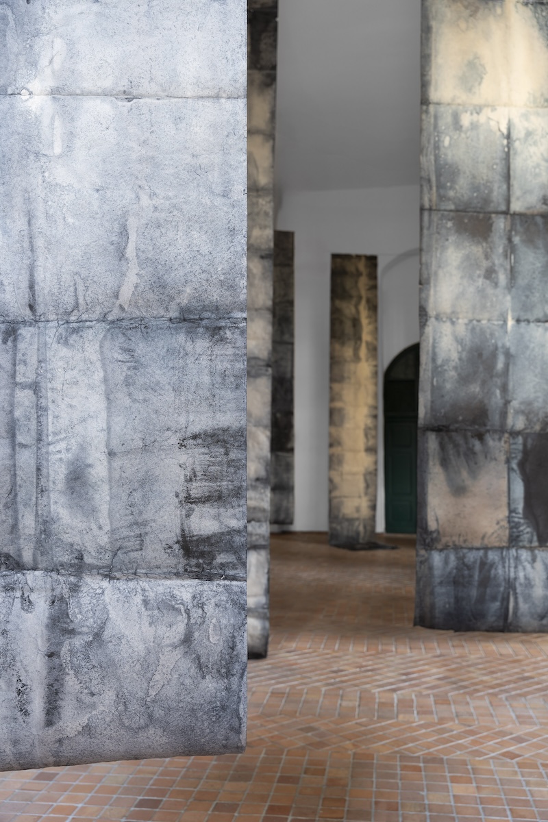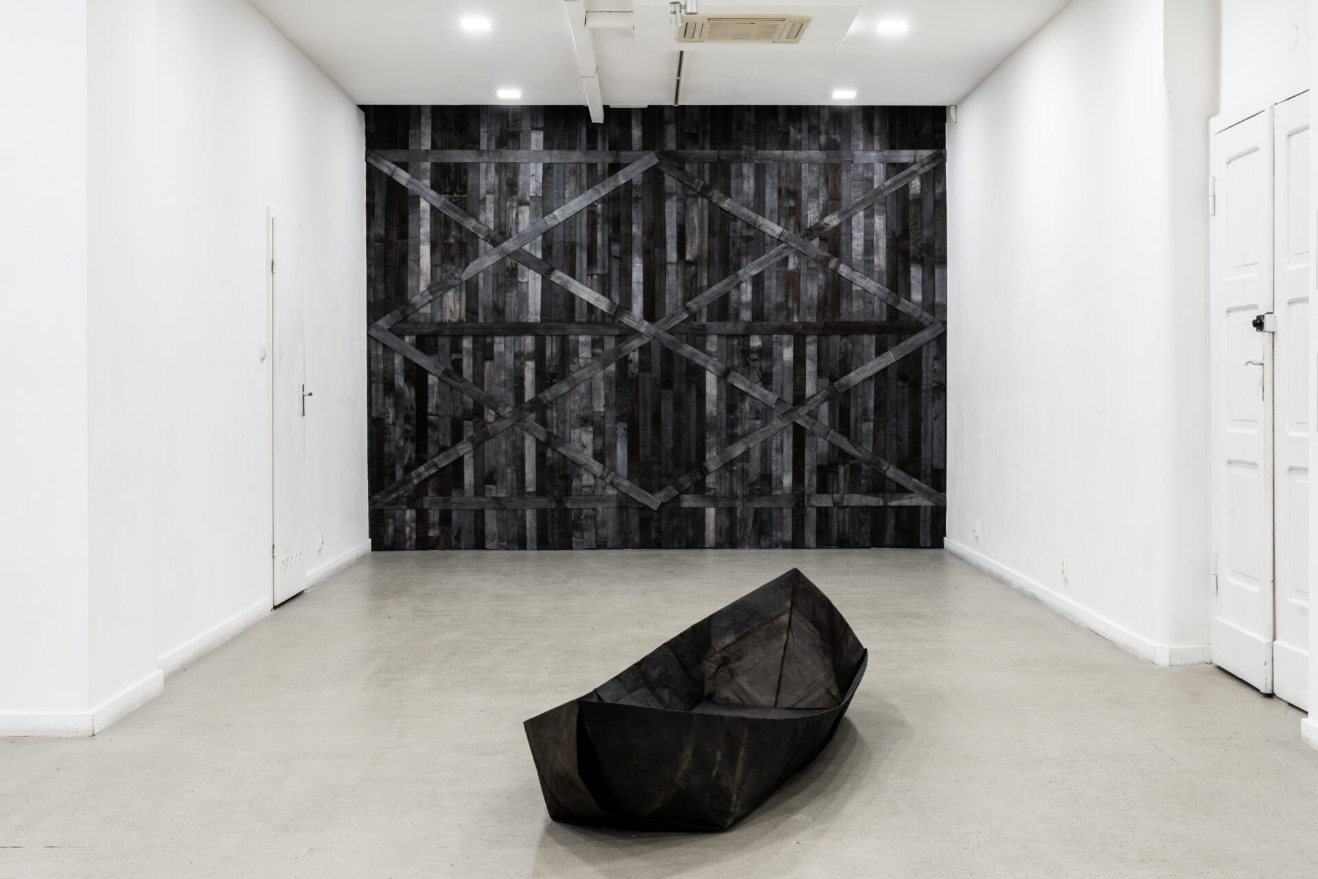 dzieła premierowe: OBŁOK, tkanina art. 4 x 8 m, ICARUS, papier barwiony, 2 x 2 x 4 m oraz SZTANDARY, papier barwiony, 7 rysunków 1 x 6,5 m