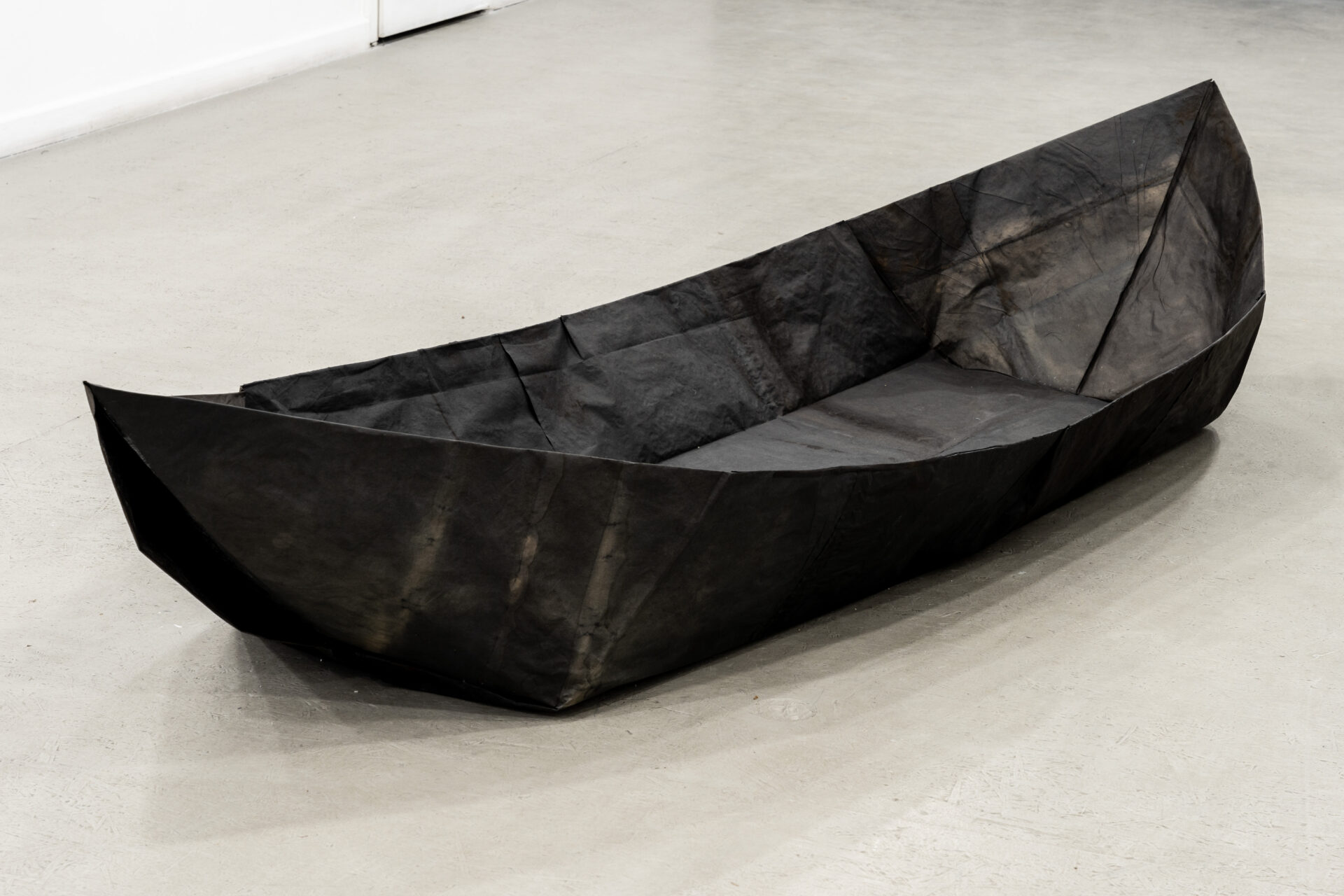 praca przestrzenna wykonana w technice origami, papier barwiony, wymiary 48 x 250 x 90 cm