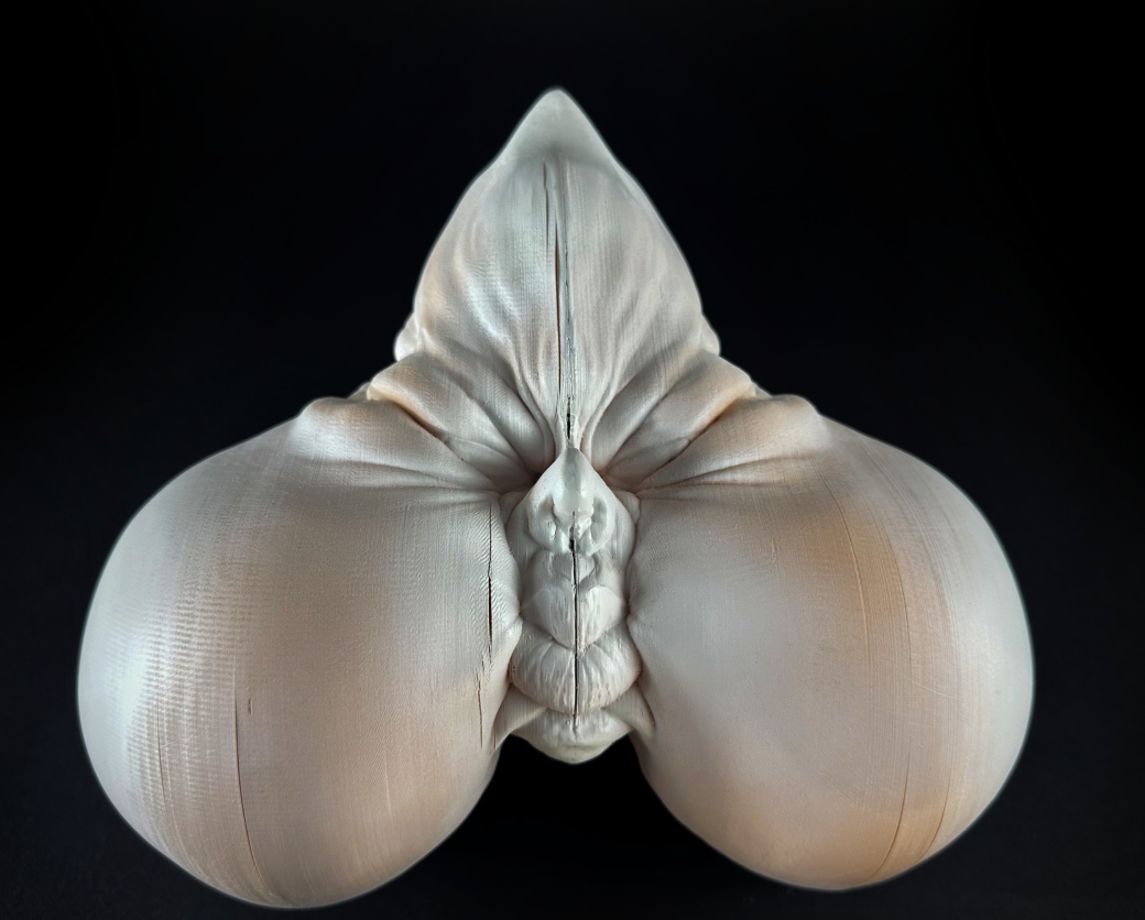,,WYSOKOCIŚNIENIOWY PUCIOL”, z cyklu ,,Symetria – domena głupców” – rzeźba, druk 3d (ABS i żywica), 26 x 20 x 18 cm, premierowa prezentacja – wystawa pt. ,,Strategie Przestrzenne #4”/ kuratorzy: Wiesław Koronowski, Jarosław Bogucki, Rafał Kotwis / Muzeum Śremskie, Śrem (2025)
