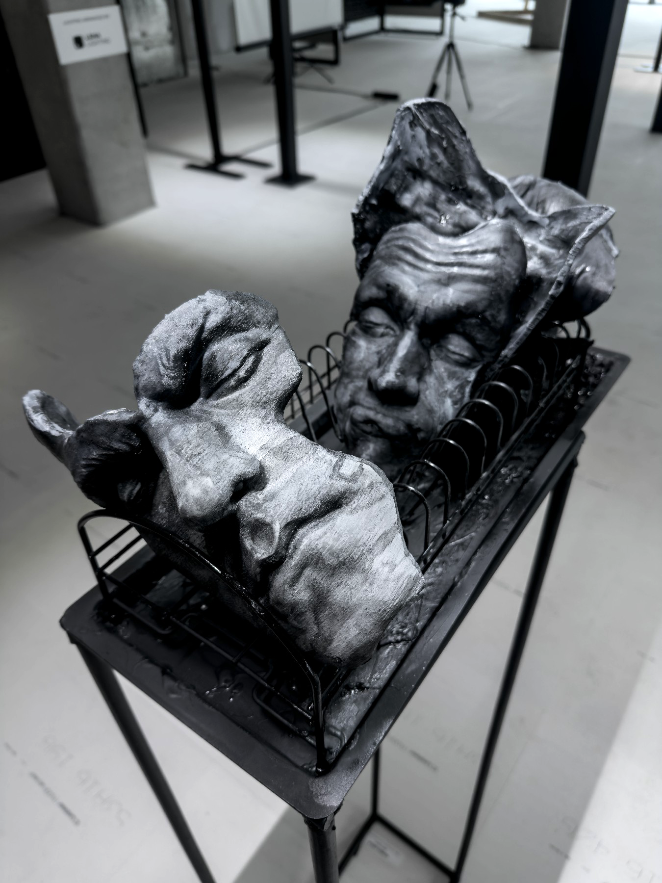 rzeźba, druk 3d (ABS) na podstawie skanu, metal, rzeźba: 45 x 20 x 20 cm, postument o wysokości 110 cm/premierowa prezentacja – wystawa pt. ,,STAND/ART/3D” w ramach 9. edycji Poznań Art Week, kuratorzy: Igor Mikoda, Rafał Kotwis / Nowy Rynek, Poznań (2025)