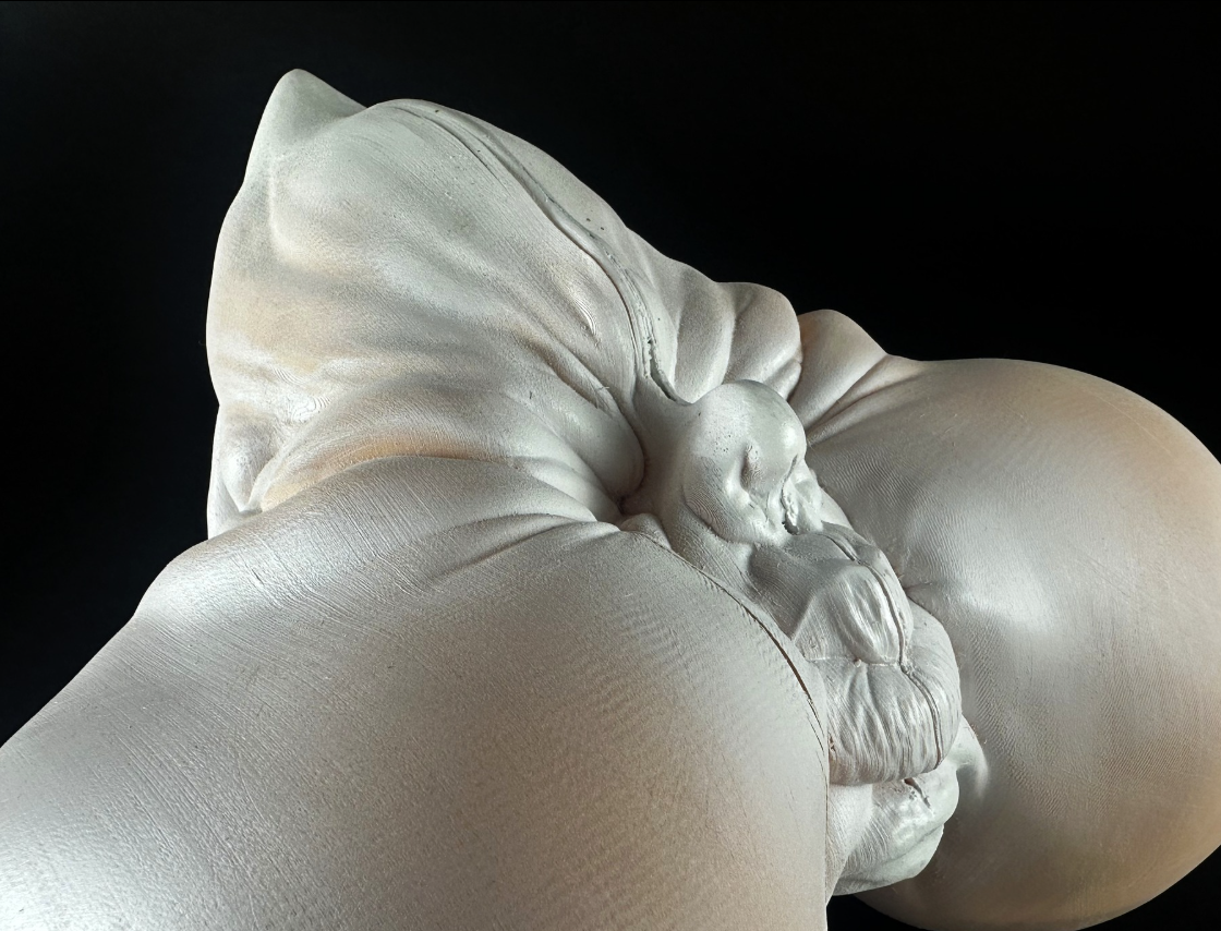 rzeźba – wydruk 3d 20x30x40 cm oraz publikacja wizualizacji w zinie – wydruk riso, format a4 / w ramach wystawy oraz publikacji zina pt. UMIERALNIA / przestrzeń DOMIE prowadzona przez Stowarzyszenie Komplet, św. Marcin 53a, Poznań
