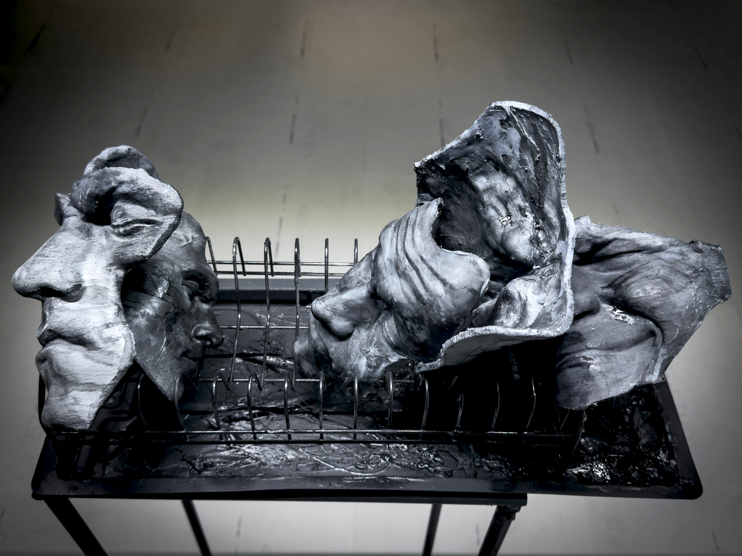 2 rzeźby z cyklu ,,Symetria – domena głupców” / wydruki 3d, 20 x 28 x 23 cm, 20 x 25 x 23 cm/ premierowa prezentacja podczas Biennale ,,Laboratorium Rzeźby 2024” / kuratorzy: Dominik Zieliński, Weronika Rezmer / Galeria i Dom Aukcyjny TotuArt, Galeria Młociny, Warszawa (2024)