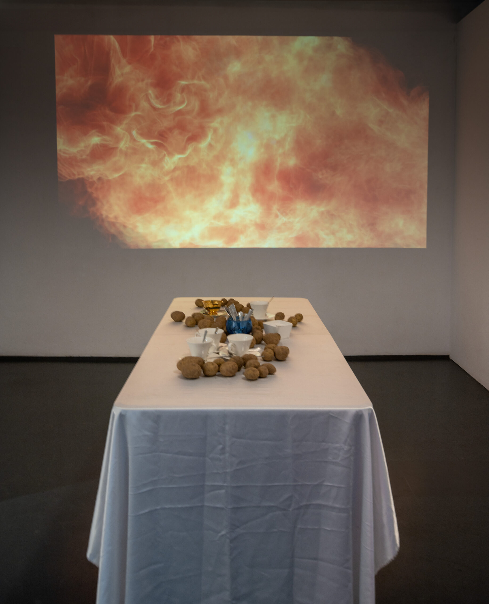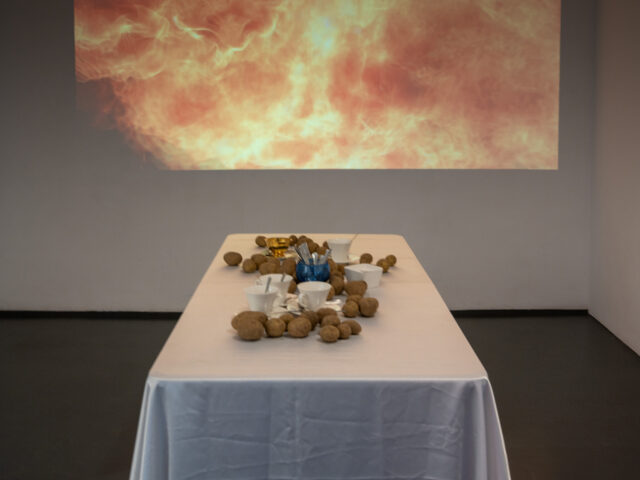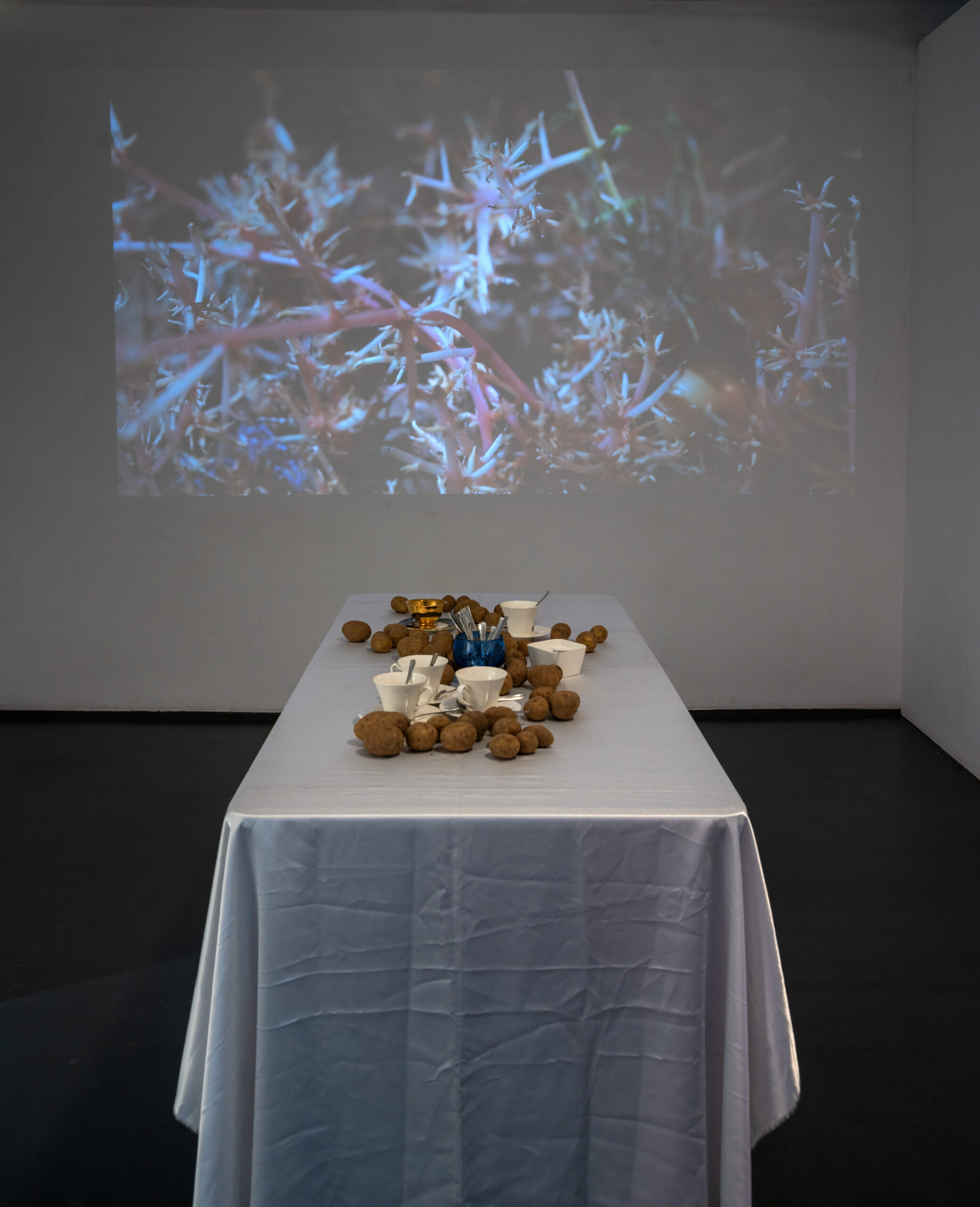 DIP TO WHITE/ instalacja multimedialna z komponentem filmowym, projekcja full HD16/9, 41,21″ loop/ Sound design: Ostap Manulyak/ wystawa zbiorowa pt. ,,KONWERSACJE II. WIELKA PODRÓŻ PRZEZ WIELE GRANIC, JĘZYKÓW I KULTUR” / kuratorki: Joanna Imielska, Justyna Ryczek/ Galeria MBWA Leszno, 2023 (fot. Michał Kałużny)