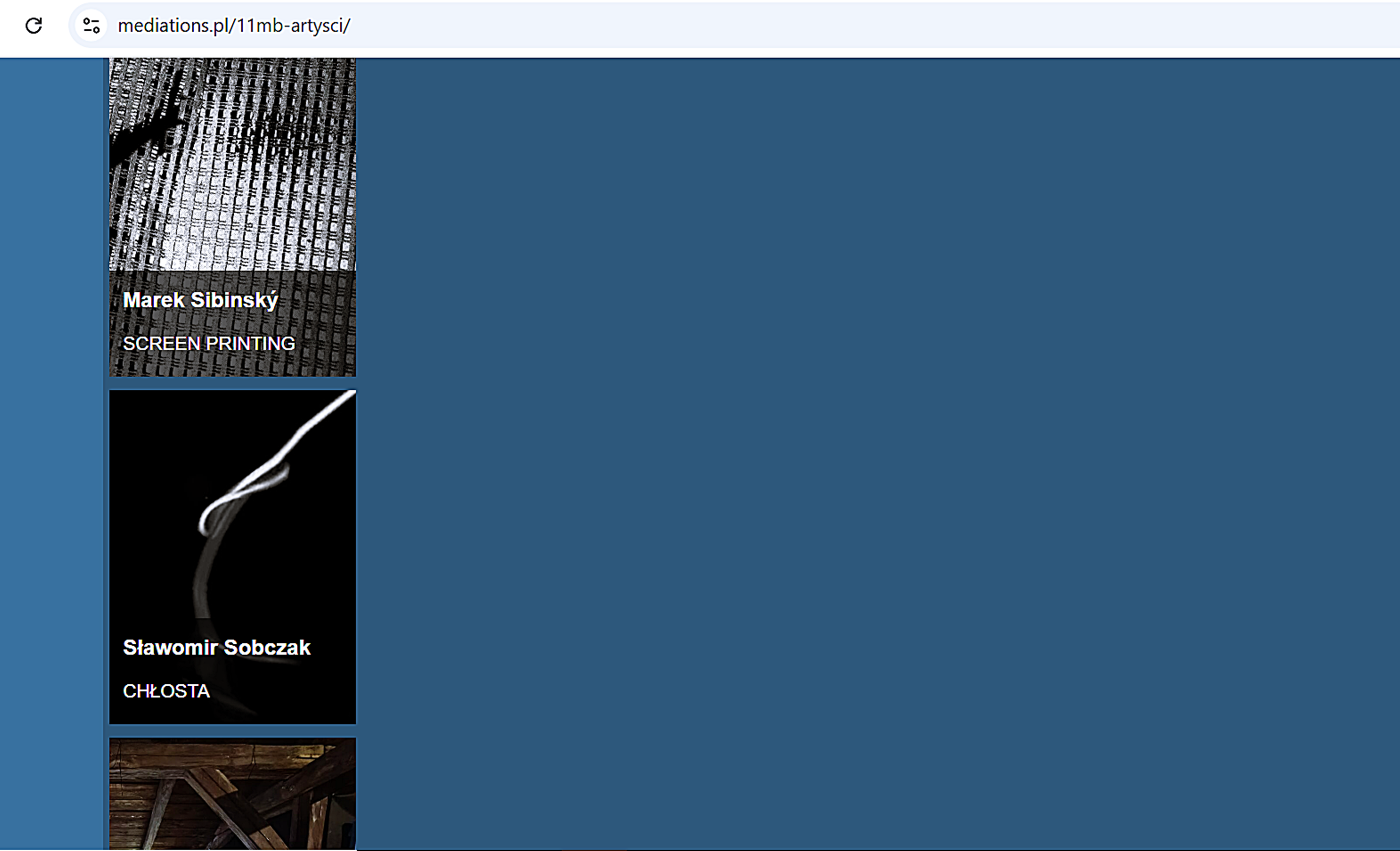 ,,CHŁOSTA – KONTYNUACJA”, multikanałowa instalacja multimedialna z przestrzennym systemem dźwięku 8.4 / prezentowana premierowo na 11. MEDIATIONS BIENNALE – MULTIVERSE-METAVERSE/ kurator Tomasz Wendland wraz z międzynarodowym zespołem/ Centrum Sztuki Współczesnej Solvay, Kraków (2025)