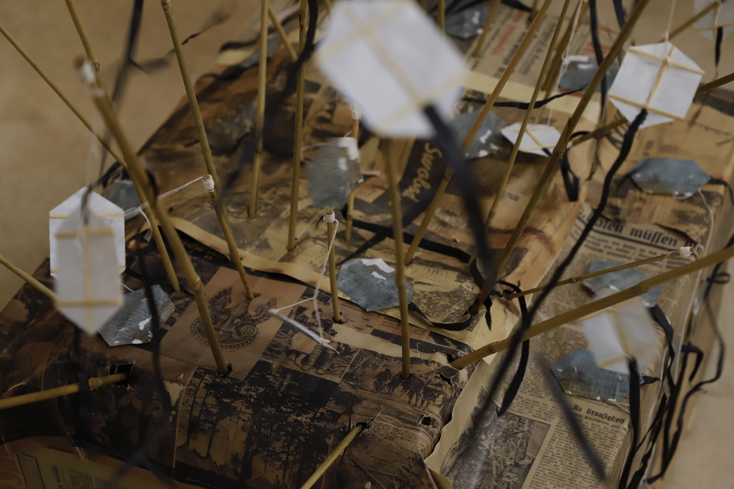 instalacja składająca się z cyklu 30 fotografii na papierze o wym. 30 x 45 cm i kilkunastu przestrzennych latawców o wym. od 8 x 5 cm do 100 x 300 m
