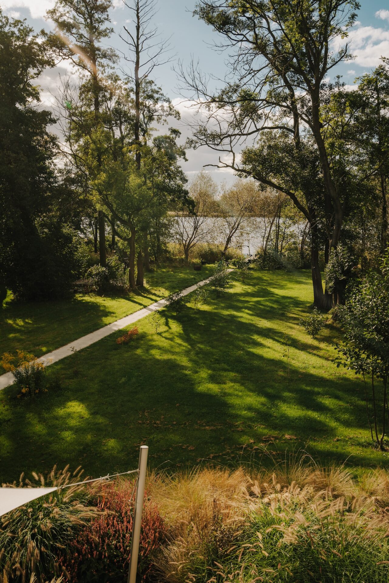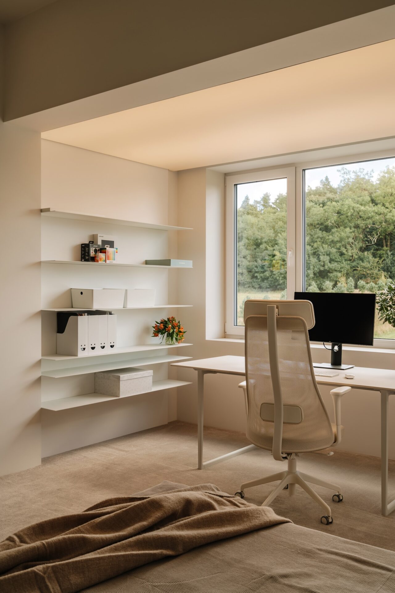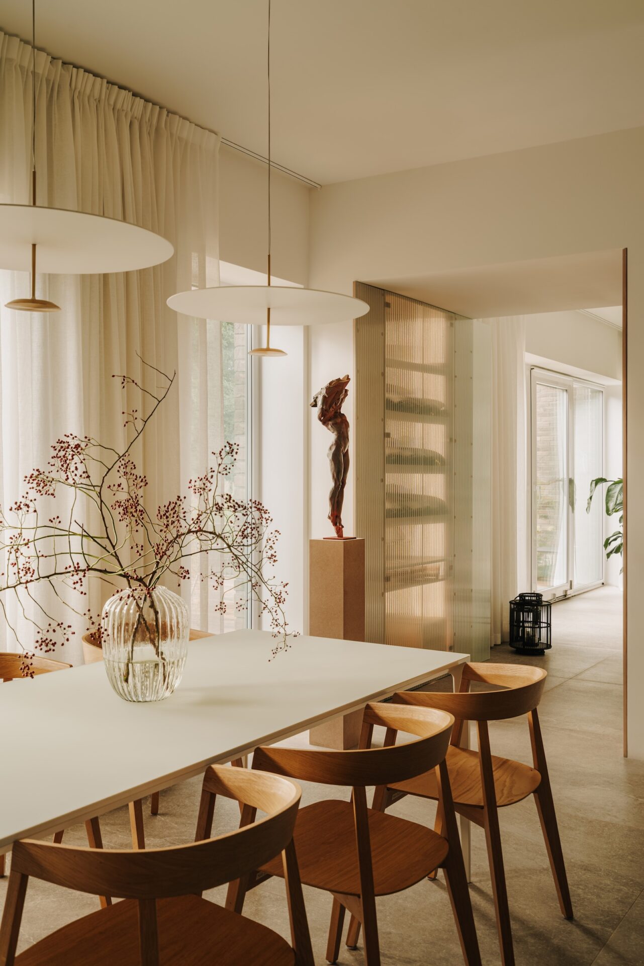 Zieleń otoczenia była inspiracją dla bionicznych detali wyposażenia oraz naturalnej palety materiałowej. Dążono do uzyskania wnętrz prostych, lecz nie surowych. Starano się zachować równowagę, pomiędzy minimalizmem a domowym ciepłem. Charakter wnętrz budowany jest poprzez zestawienia kolorów i faktur.