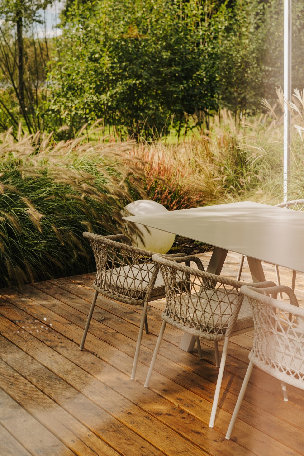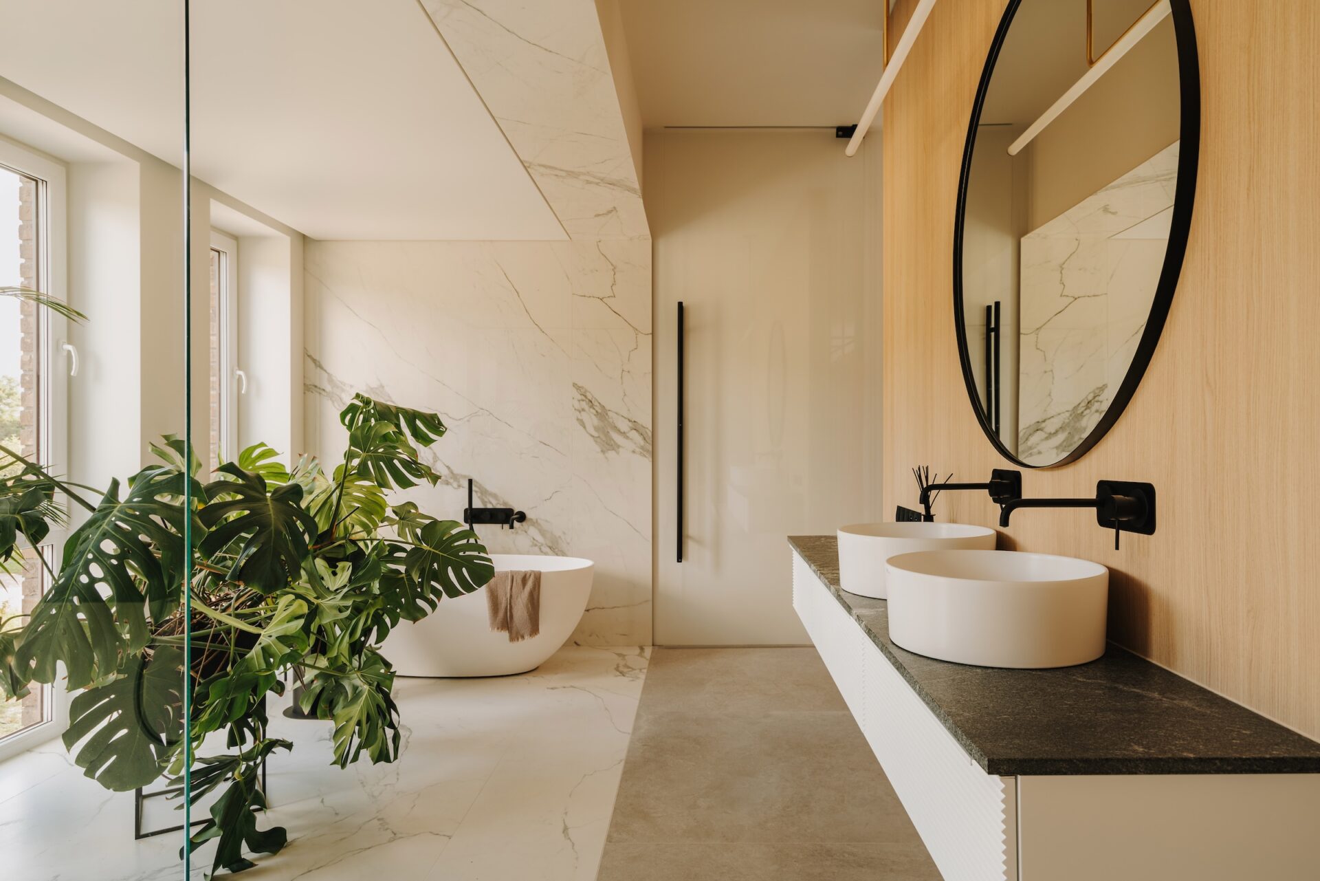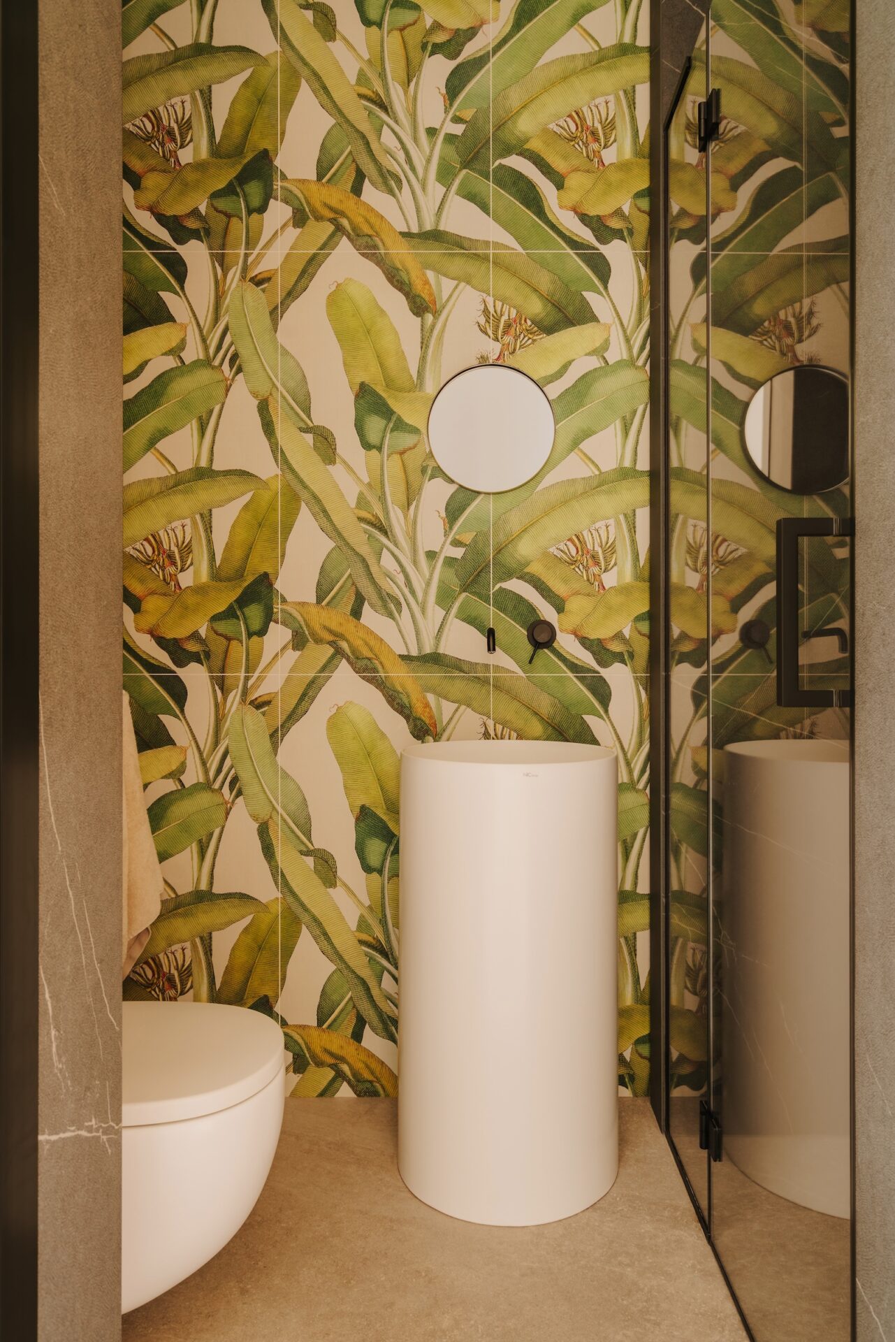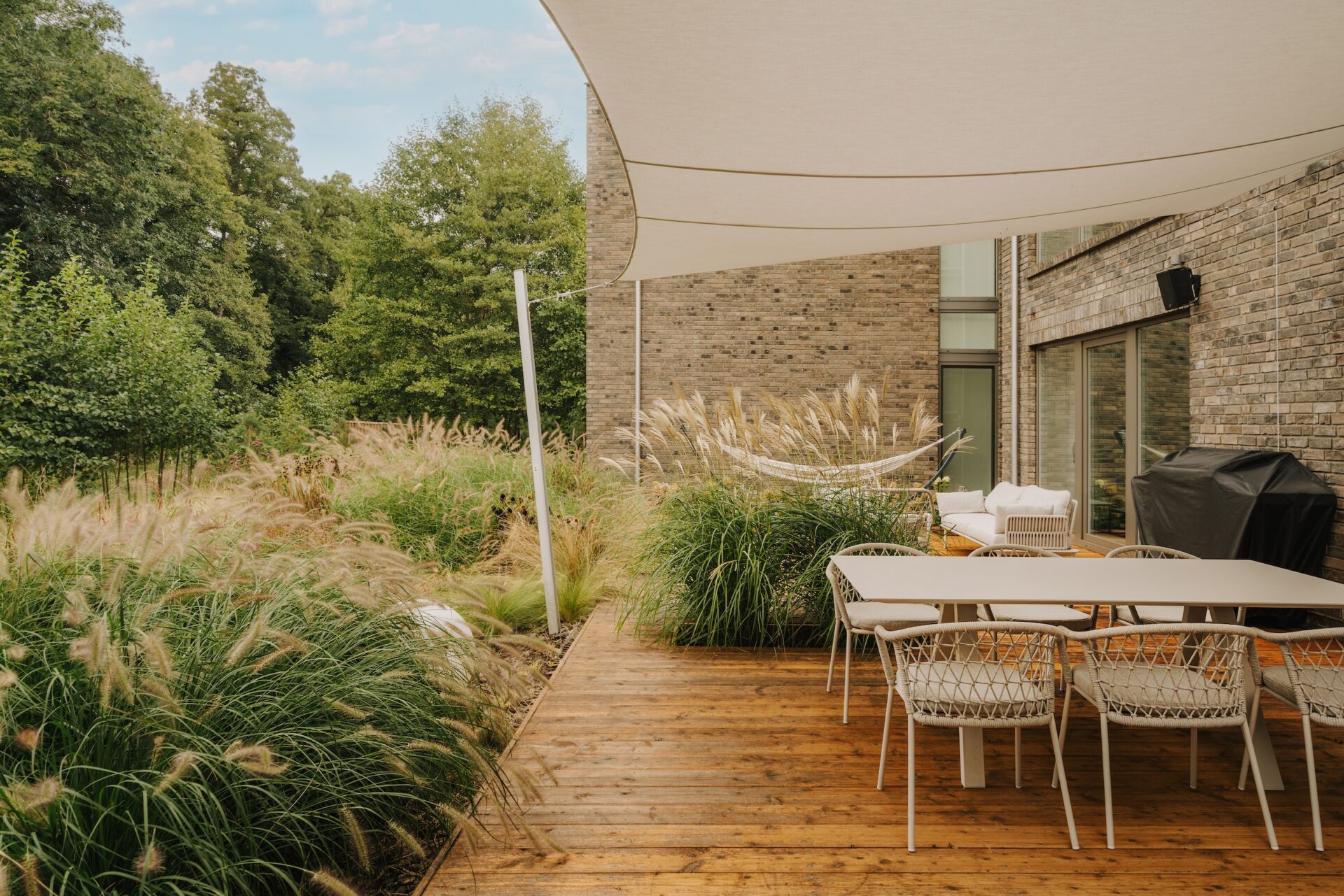 Zieleń otoczenia była inspiracją dla bionicznych detali wyposażenia oraz naturalnej palety materiałowej. Dążono do uzyskania wnętrz prostych, lecz nie surowych. Starano się zachować równowagę, pomiędzy minimalizmem a domowym ciepłem. Charakter wnętrz budowany jest poprzez zestawienia kolorów i faktur.