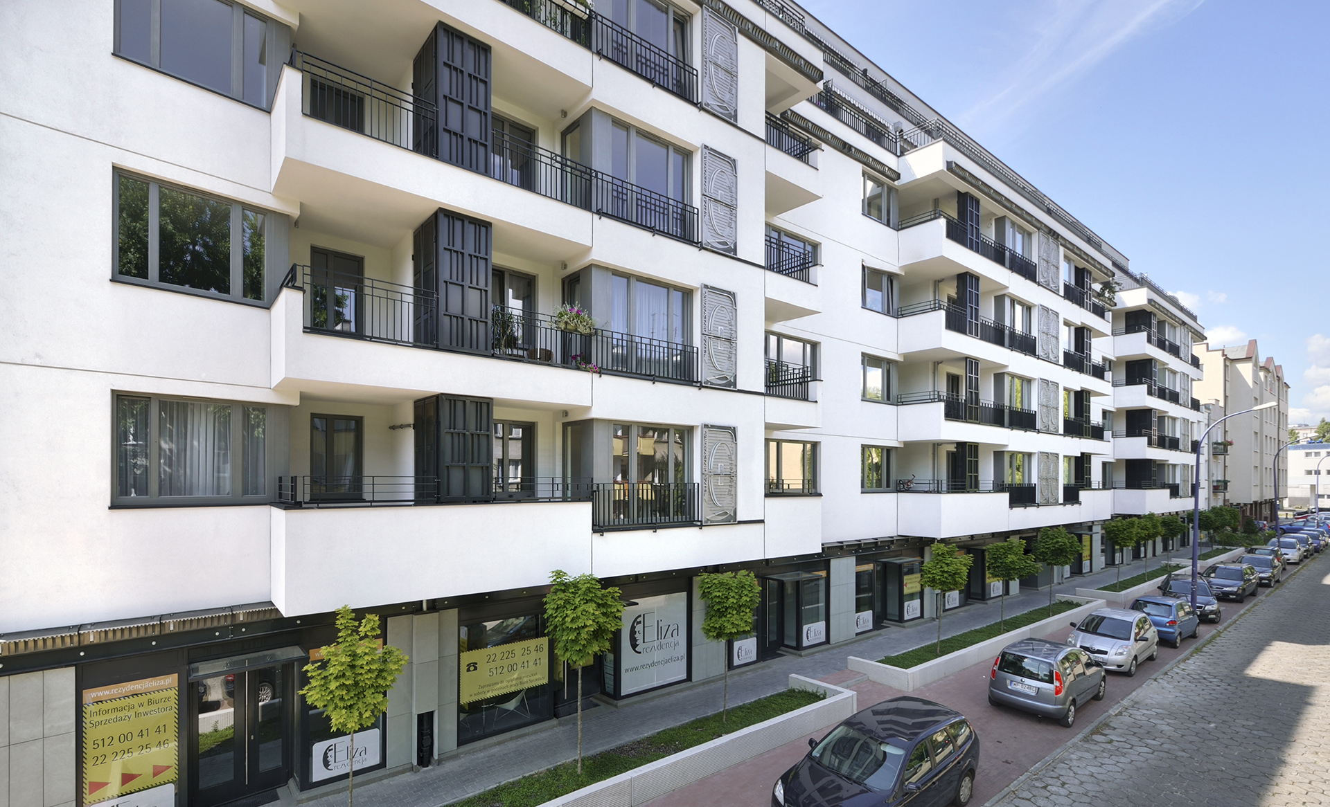 Rezydencja Eliza to kameralna kamienica na warszawskiej Ochocie, realizująca koncepcję „lateral living”. Wnętrza mieszkań zaprojektowano w układzie wschód-zachód: salony i jadalnie od zachodu, sypialnie od wschodu. Wykończenie łączy kilka rodzajów kamienia z naturalnym drewnem i metalowymi detalami. Na siódmym piętrze znajdują się tarasy i balkony z widokiem na zagospodarowany plac ogrodowy. Innowacyjny system przesuwnych ścian i okien pozwala integrować przestrzeń wewnętrzną z zewnętrzną, maksymalizując funkcjonalność mieszkań i tworząc płynne przejścia między wnętrzem a ogrodem.